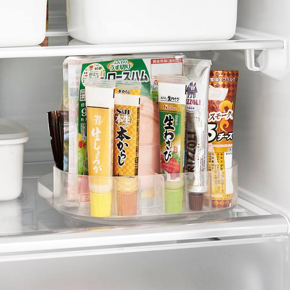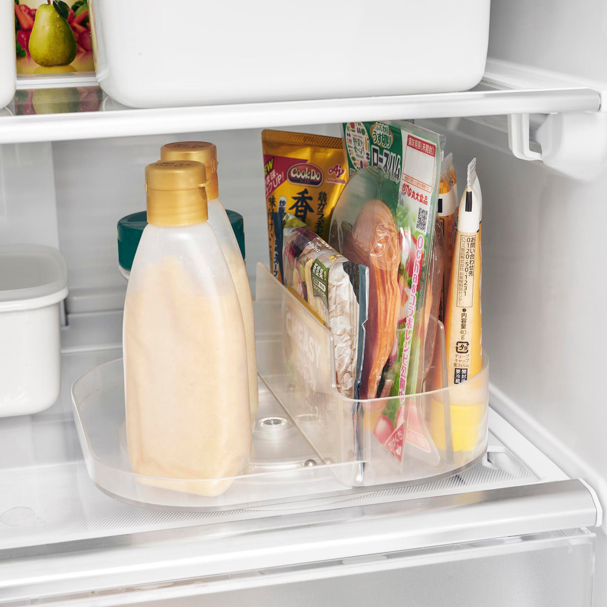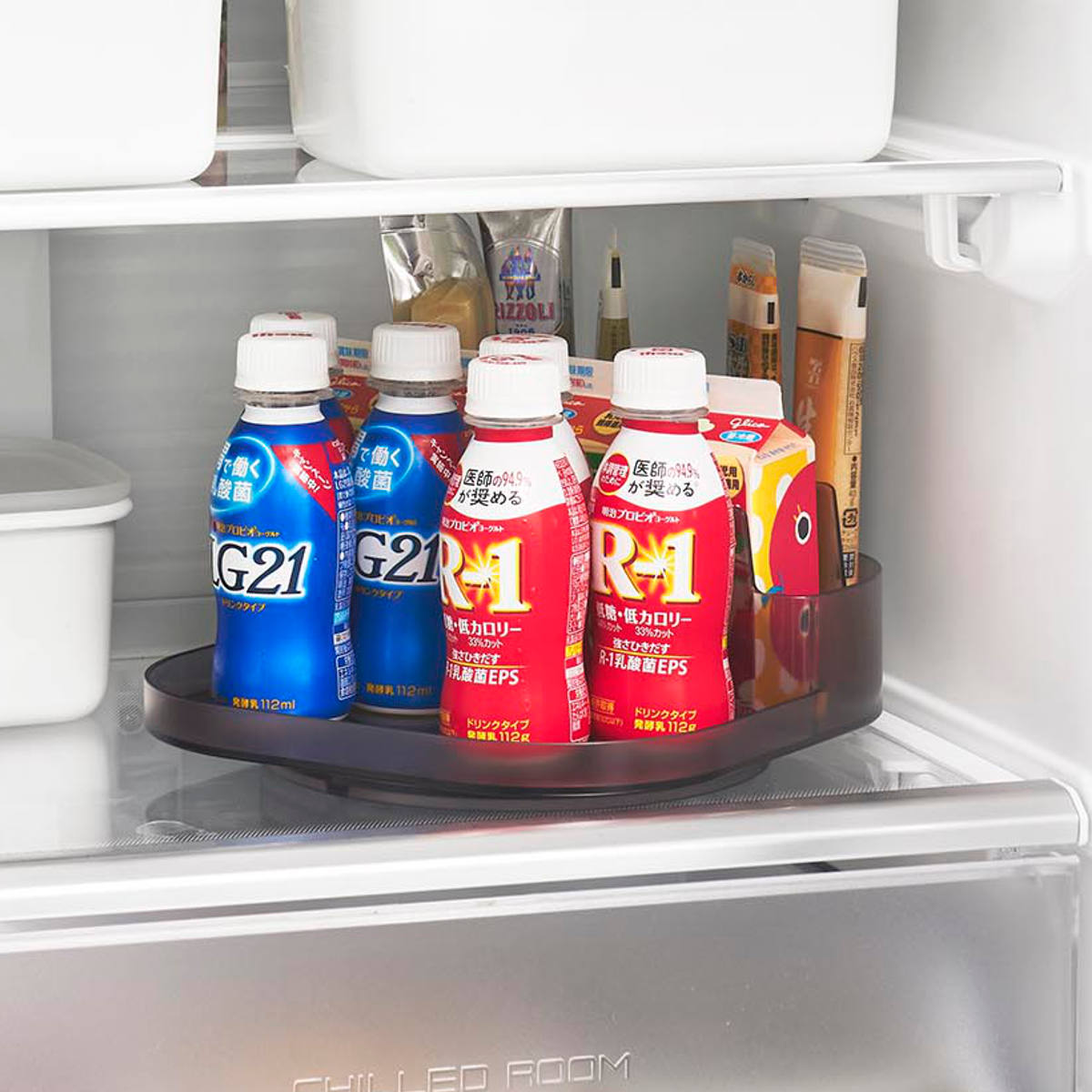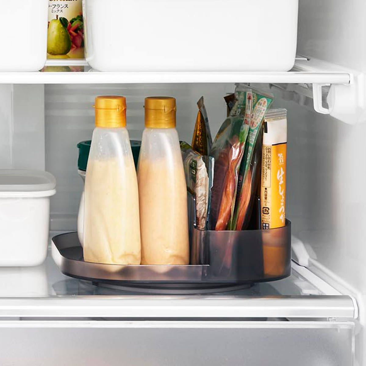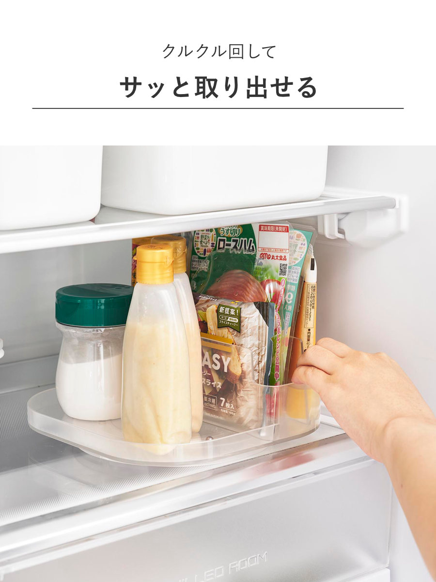 奥にある物も回転させることで楽に取り出せます。冷蔵庫がより使いやすくなり、扉を開けている時間も短縮できます。