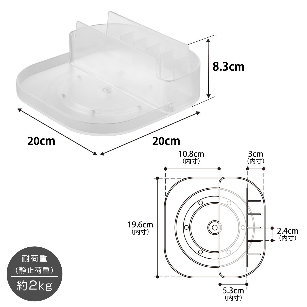 | 耐荷重 | 約 2kg(トレー:約 1kg、仕切り:約 1kg)(静止荷重) |