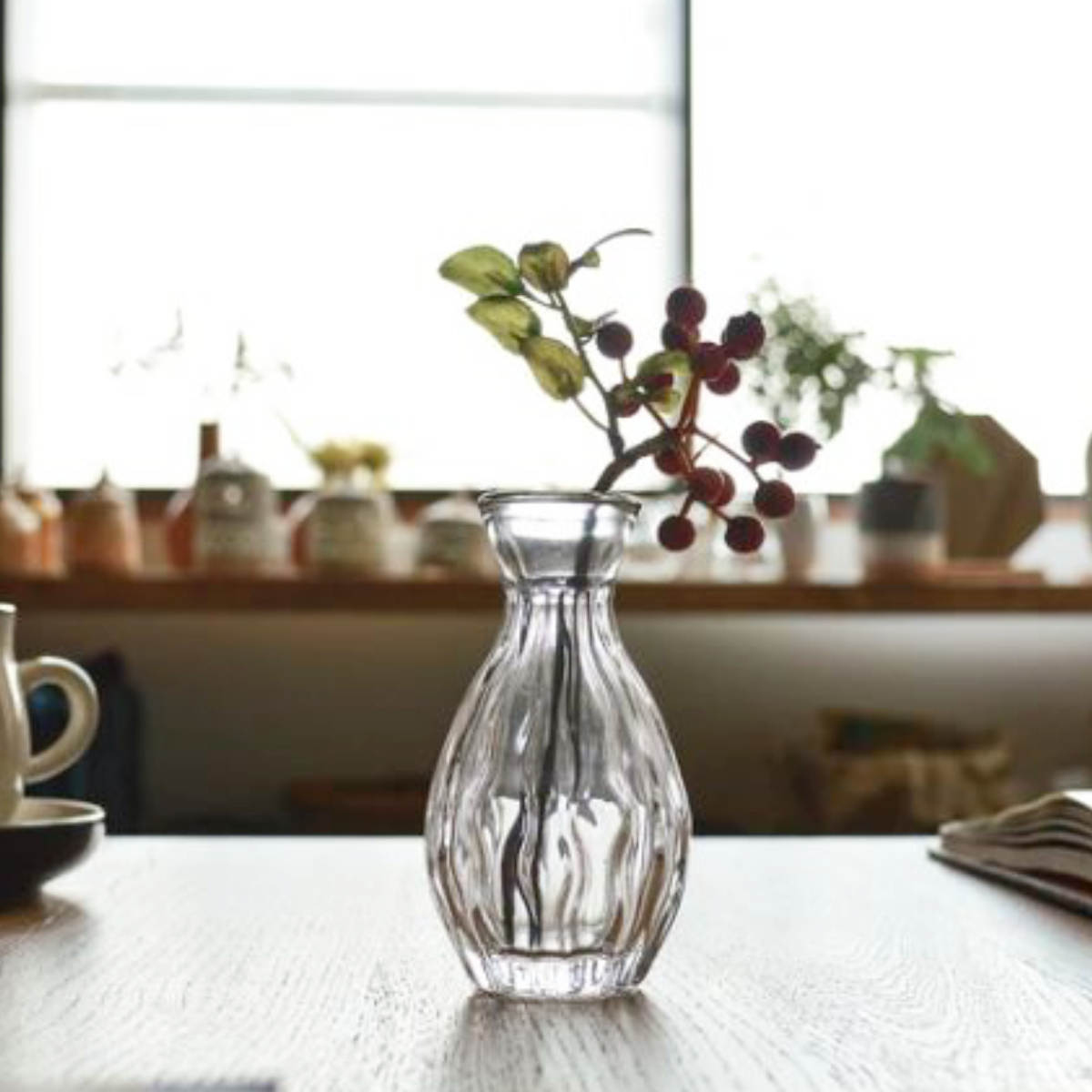 小ぶりなガラス製、ゴールドリムがアクセントのフラワーベースです。お庭やベランダで咲いた植物をテーブルの上にさりげなく飾って、季節を感じてみませんか?