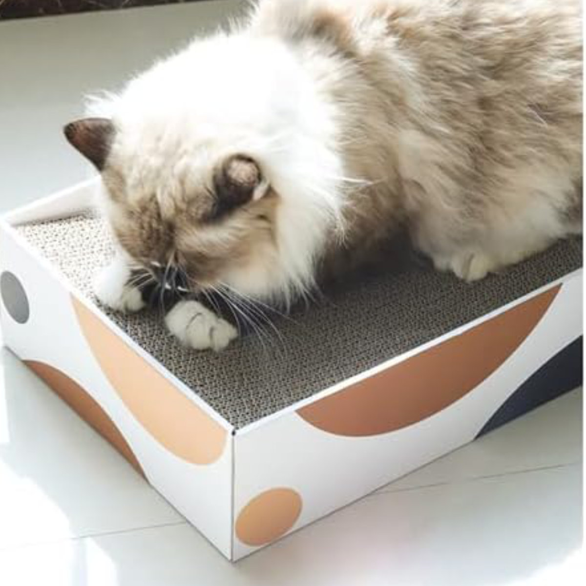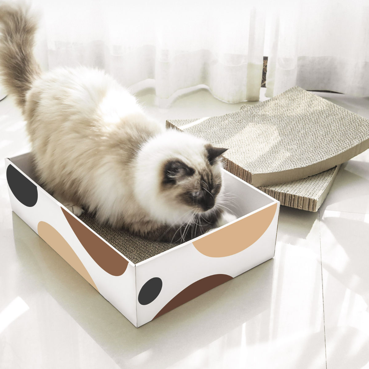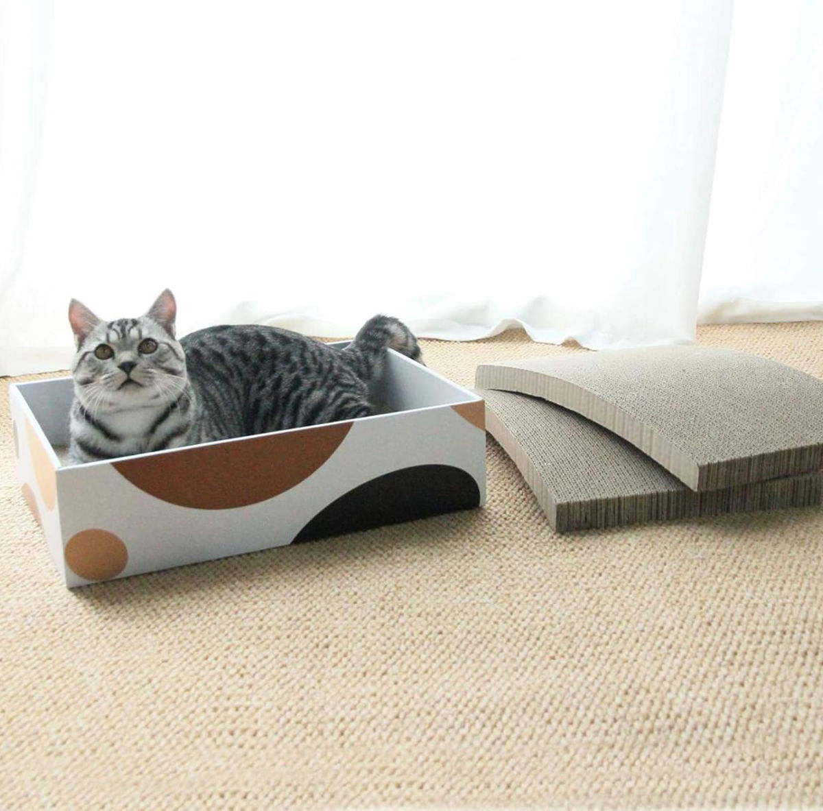 高密度のダンボールを使用しているため、研ぎクズが飛び散りにくく長期間使用可能です。また、肉球を傷つけにくい天然素材の接着剤を使用しているのも嬉しいポイントです。無毒無臭な環境に優しい素材を使用しているので、安心して猫ちゃんにお使いいただけます。