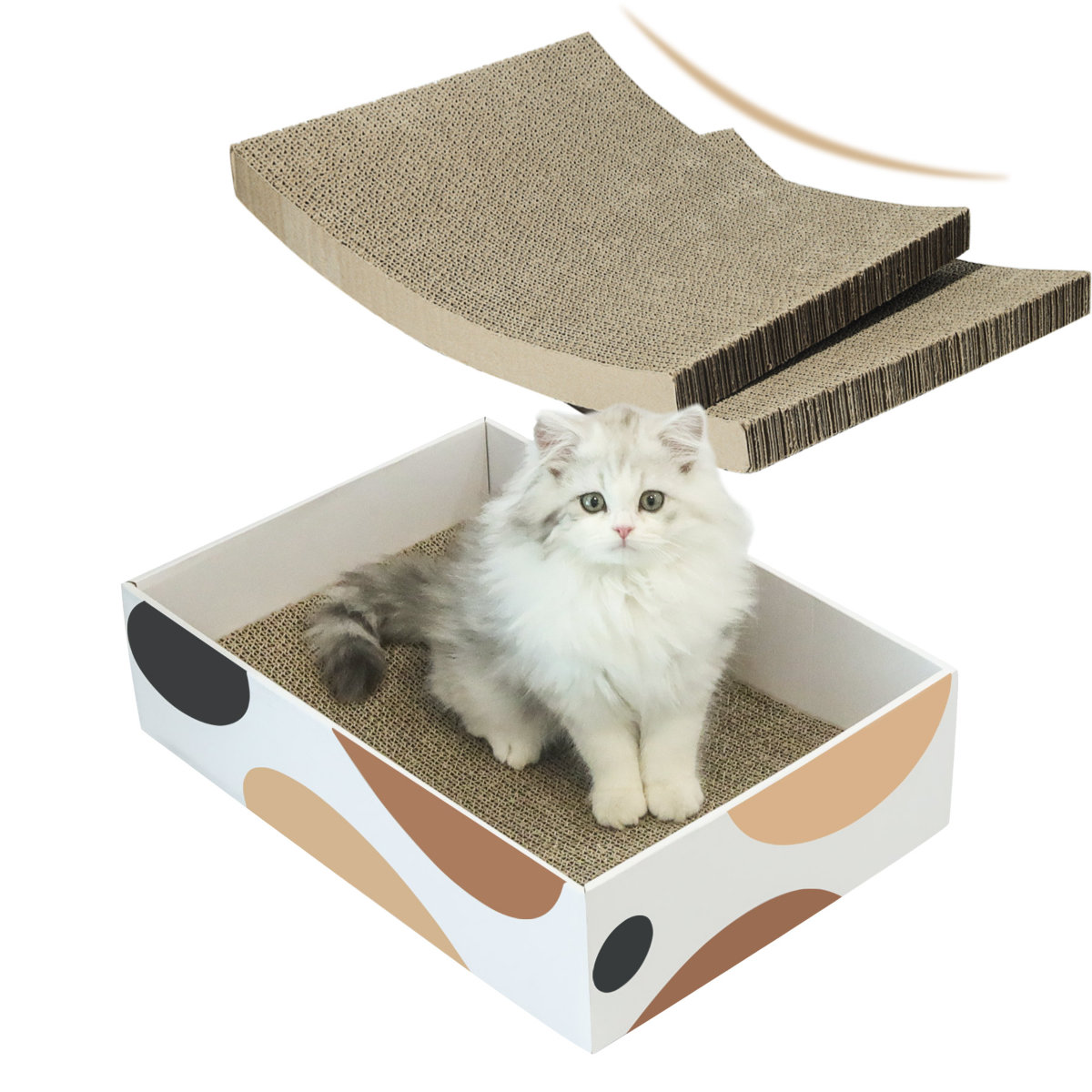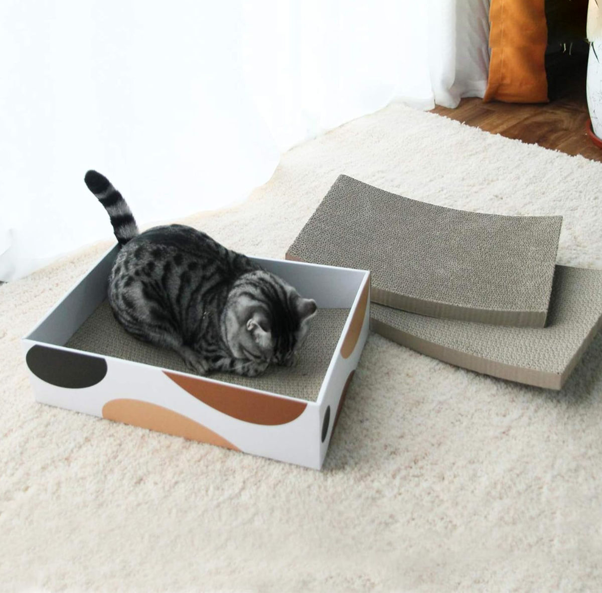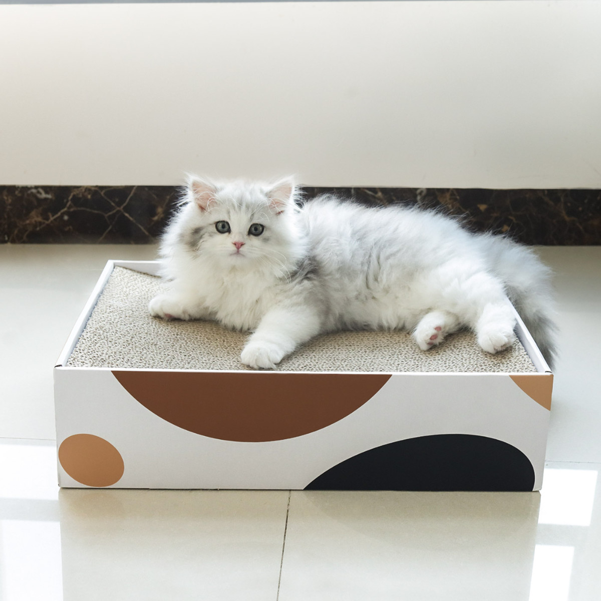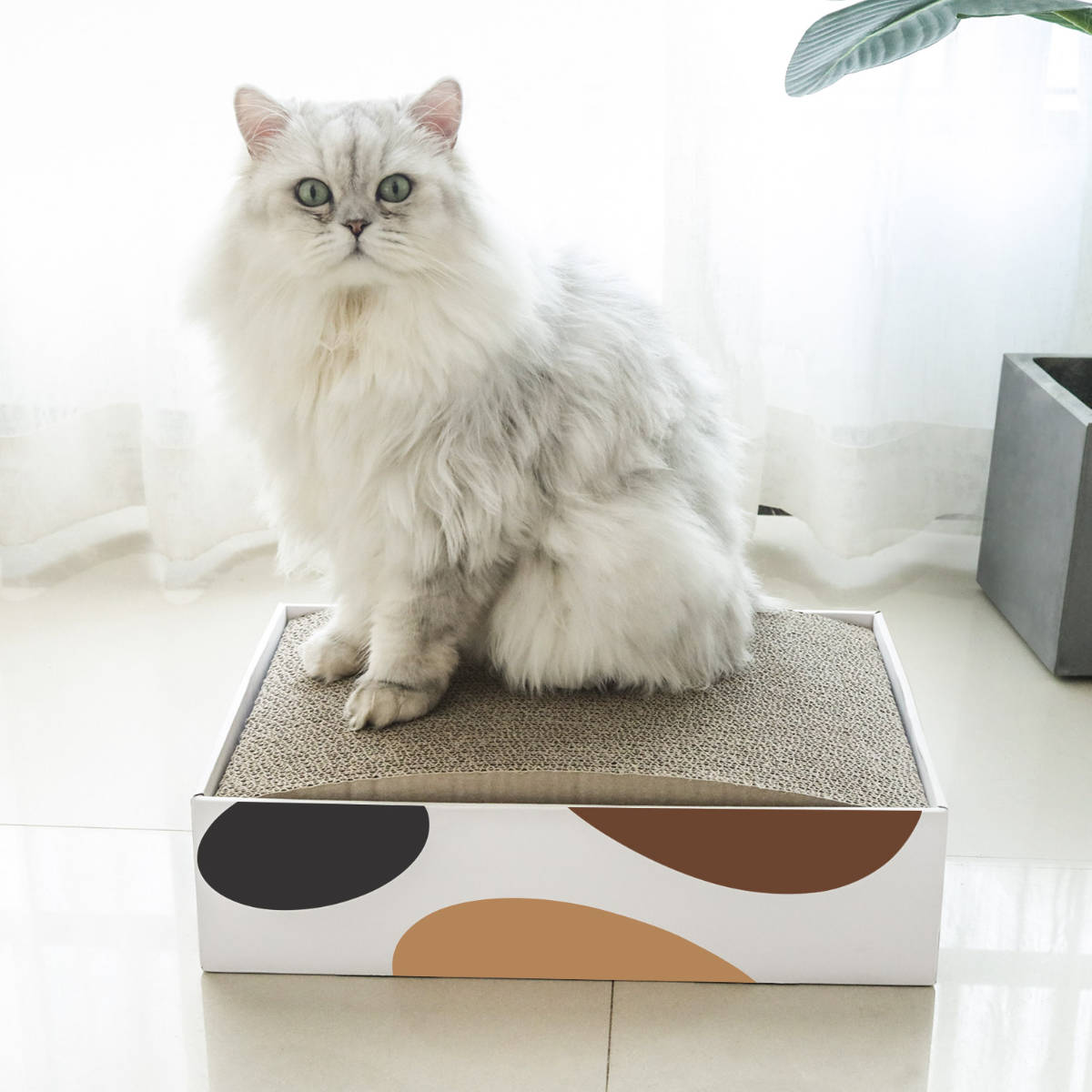 高密度のダンボールを使用しているため、研ぎクズが飛び散りにくく長期間使用可能です。また、肉球を傷つけにくい天然素材の接着剤を使用しているのも嬉しいポイントです。無毒無臭な環境に優しい素材を使用しているので、安心して猫ちゃんにお使いいただけます。