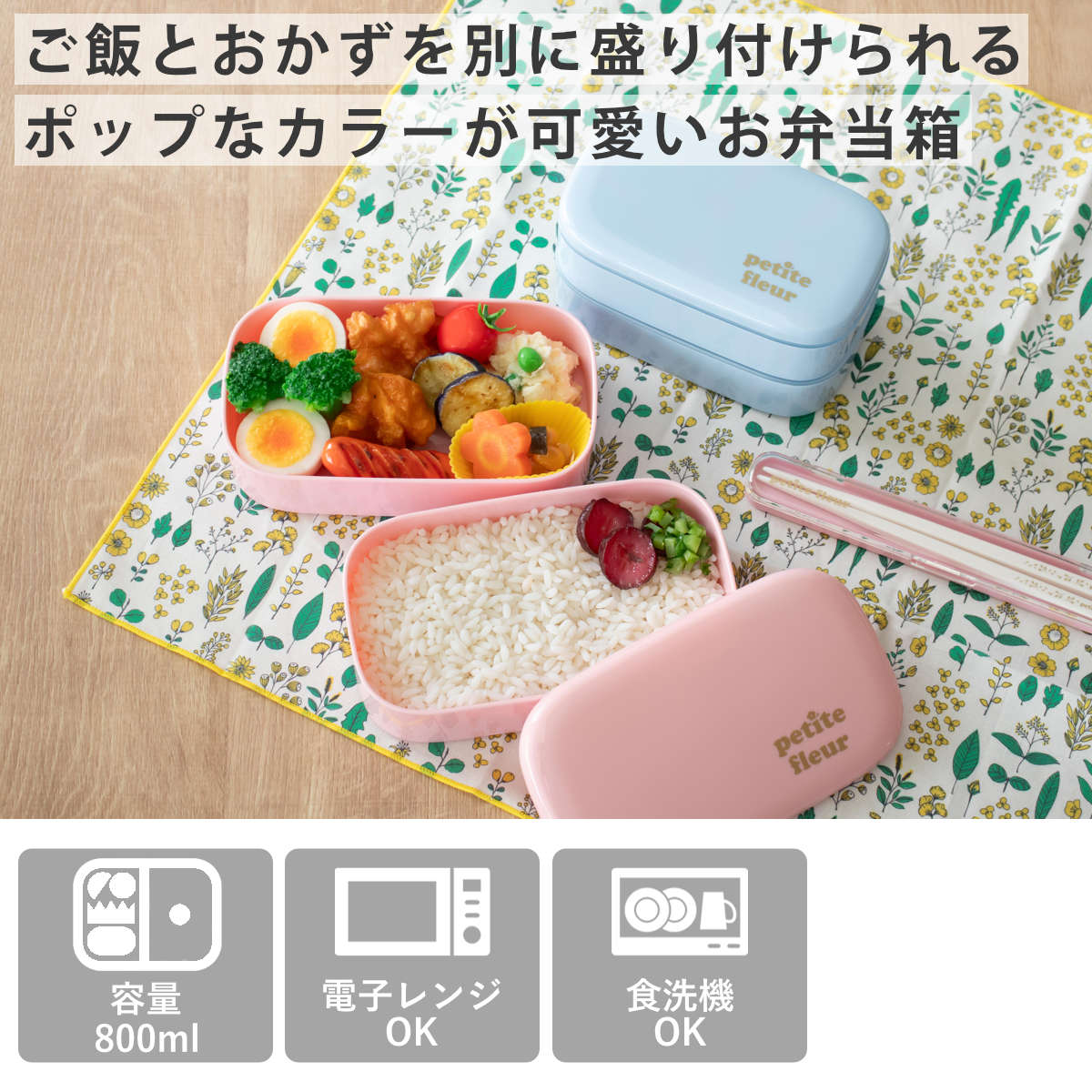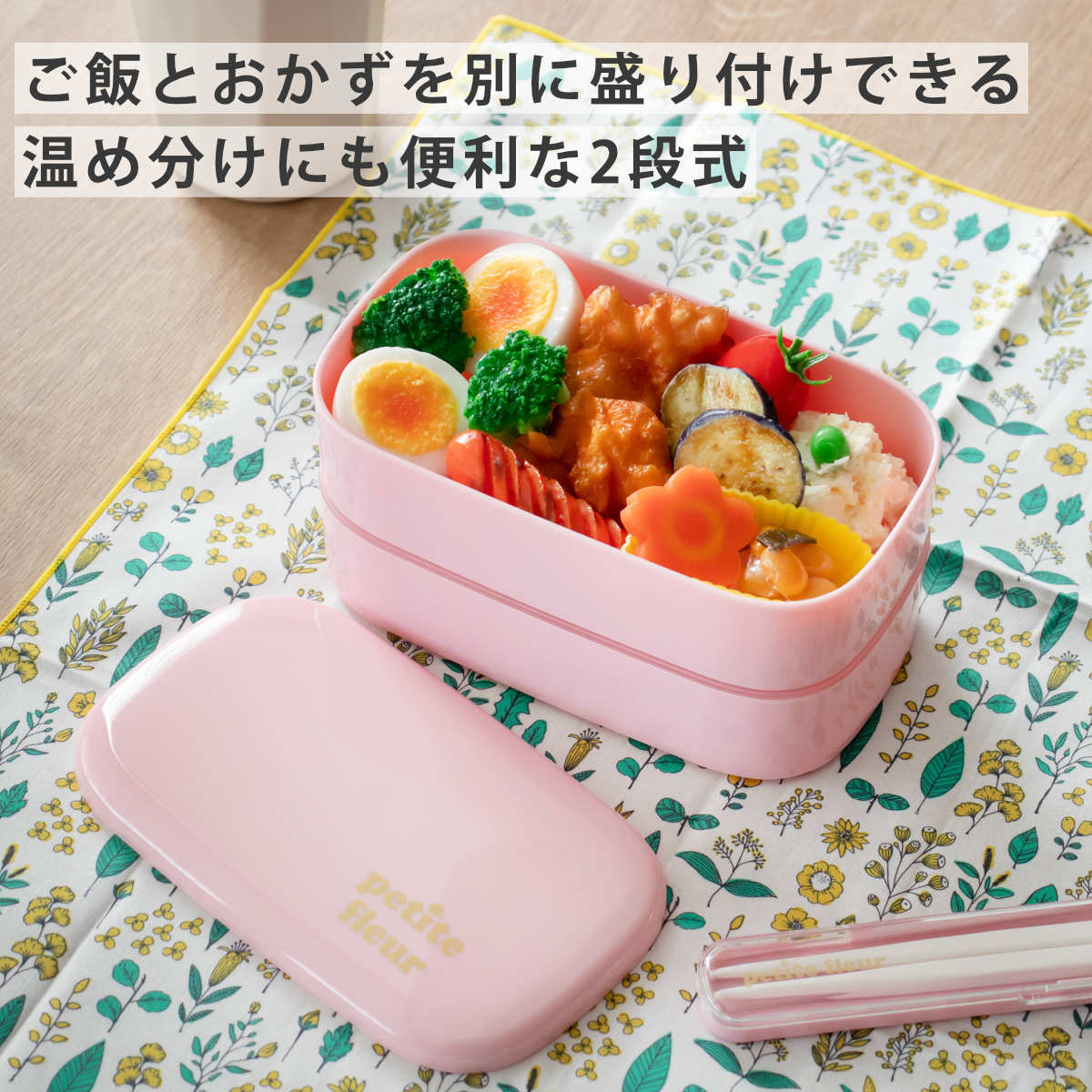 2段になっているため、ご飯とおかずを別に盛り付けることができ、温め分けにも大変便利です。お好きな具材を詰めて、毎日のお弁当作りも楽しくなりそうですね。