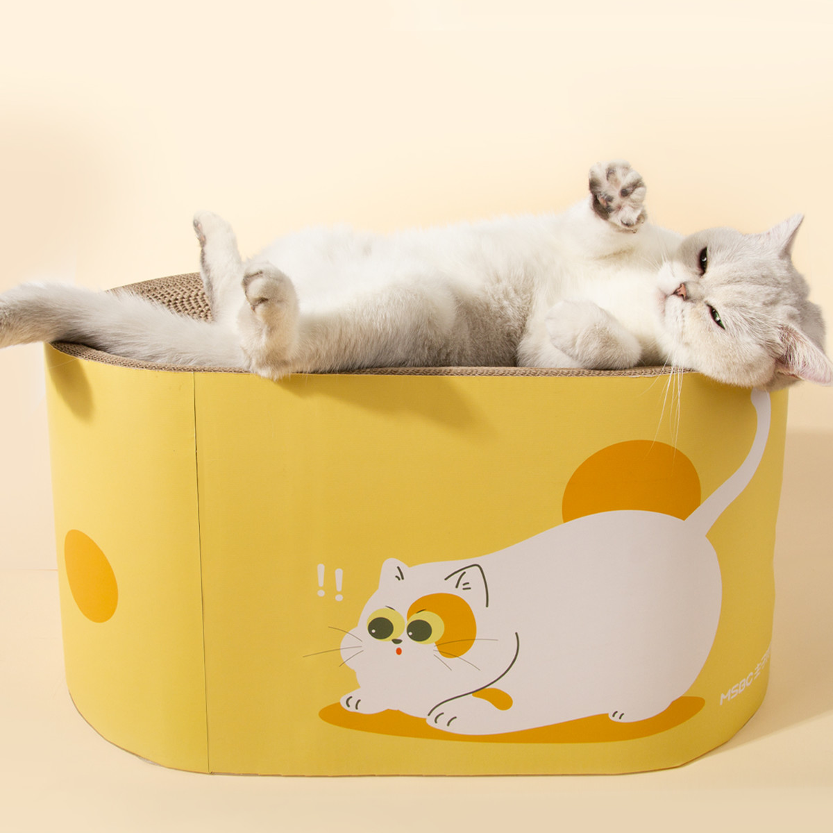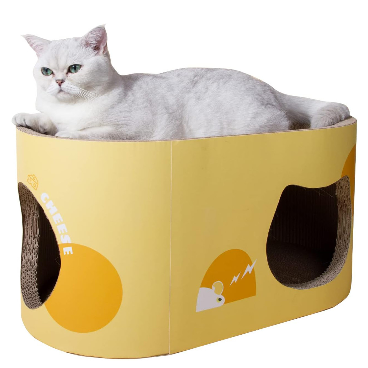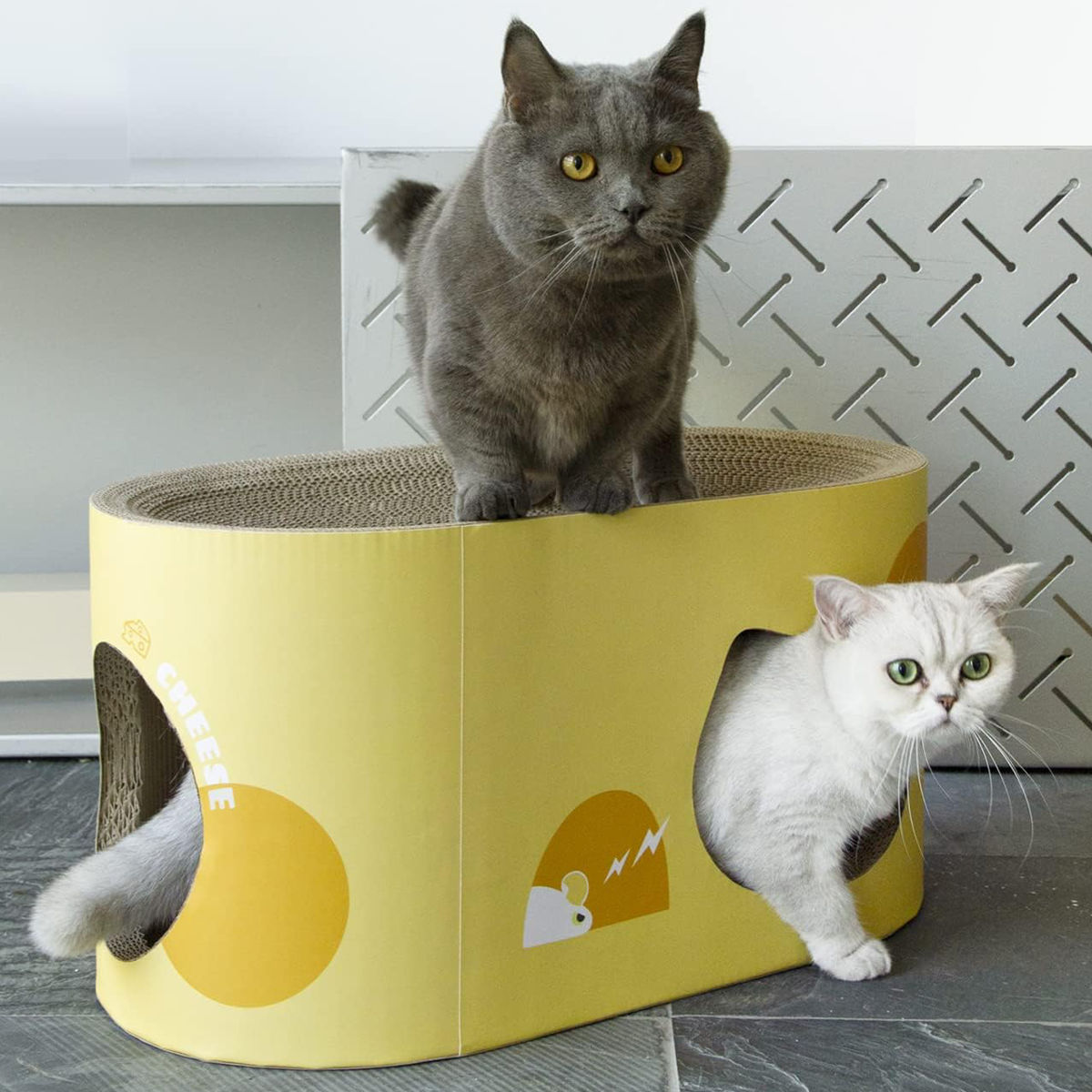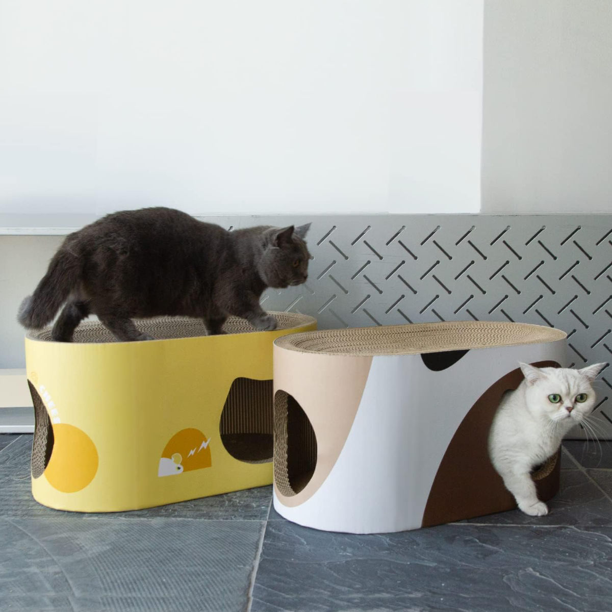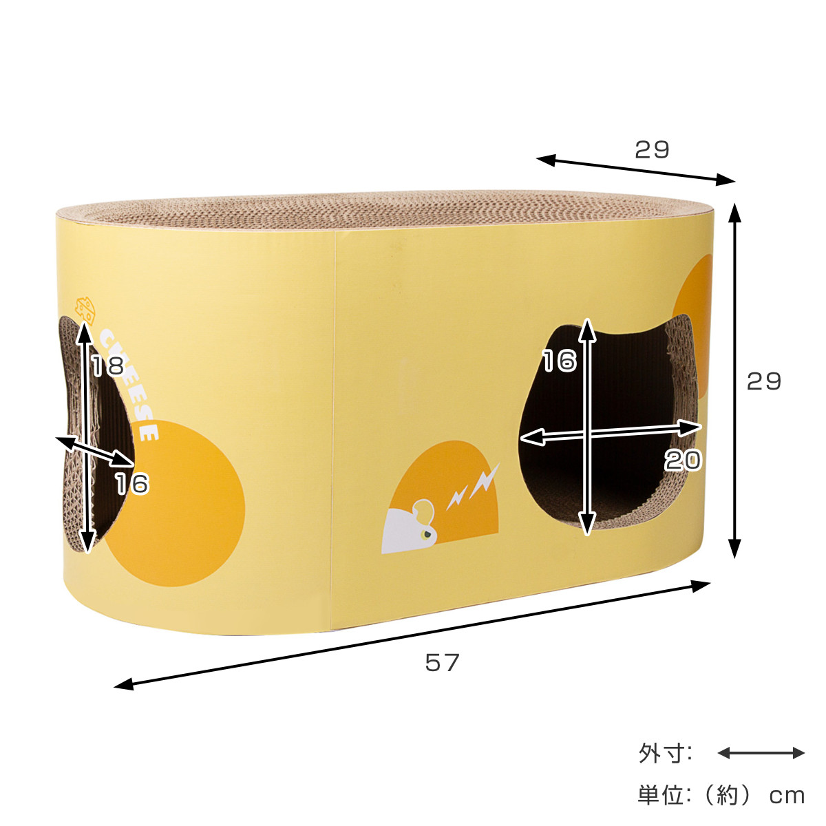 二か所の入り口から自由に出入りができる、トンネル型の爪とぎです。爪とぎとしてはもちろん、くぐって遊んだり、くつろぎスペースにしたりと、楽しく快適に過ごすことができます。複数の猫が一緒に遊んだりくつろぐことができるので、多頭飼いのご家庭にもおすすめです。