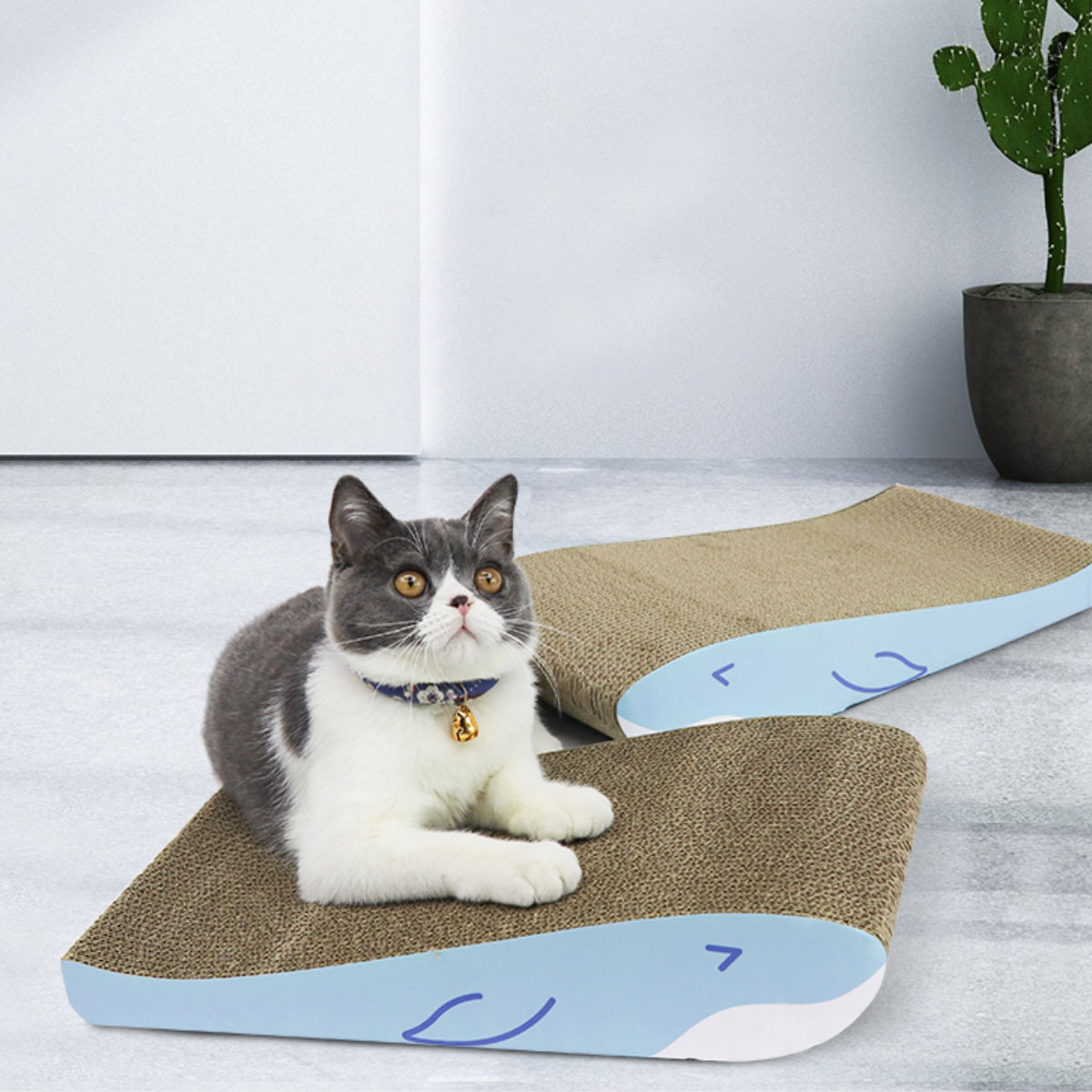 遊び心くすぐる、くじらデザインはお部屋に置くだけでアクセントになるかわいさです。爪とぎ面が広く、2枚入りのため長く使用していただけます。多頭飼いのご家庭にもおすすめです。