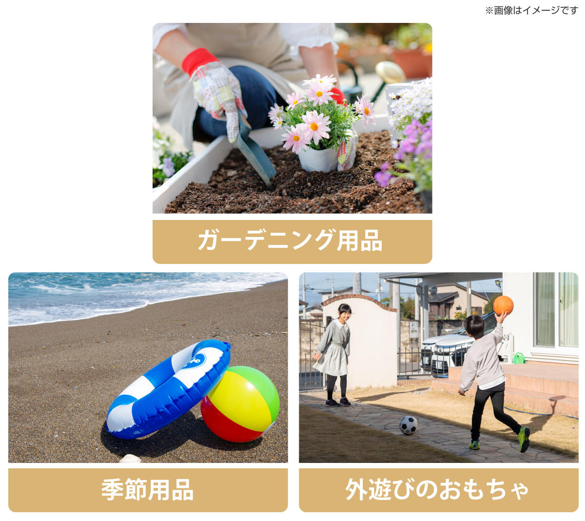 ガーデニング用品や、普段は使わない季節用品などを収納する屋外ストッカー、ベランダストッカーとしてもお使いいただけます。