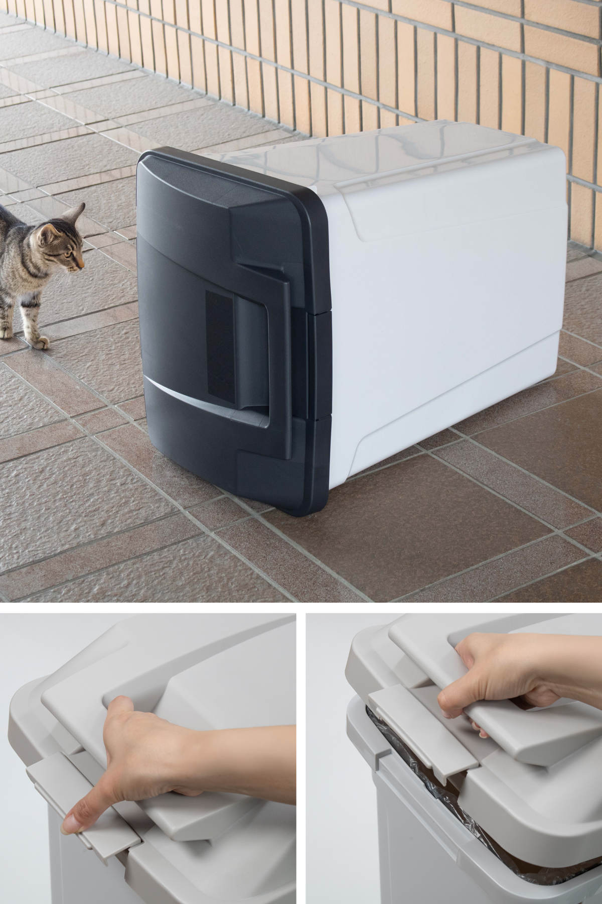 ふたは開かないようにロックできるので、猫やカラスのイタズラも怖くありません。ゴミ箱が倒れた時も中のゴミがこぼれにくいです。片手でロック解除でき、サッとふたを開けられます。