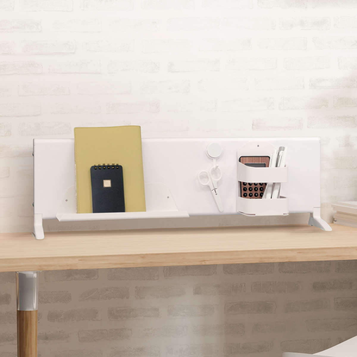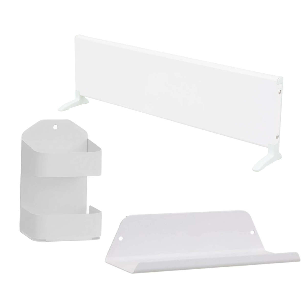 ホワイトカラーとシンプルなデザインが場所を選ばず、どんなテイストのお部屋でも使いやすいです。幅60cmロータイプのマグネットボード、ショートトレイ、小物ホルダーの3点セットです。