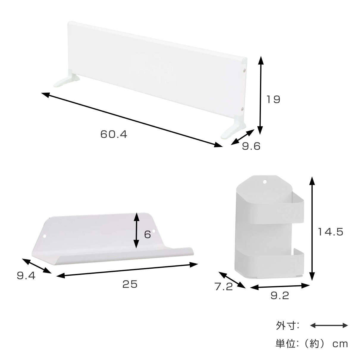 | サイズ | マグネットボード:約 幅60.4×奥行9.6×高さ19(cm) 小物ホルダー:約 幅7.2×奥行14.5×高さ14.5(cm) トレイ:約 幅25×奥行9.4×高さ6(cm) |