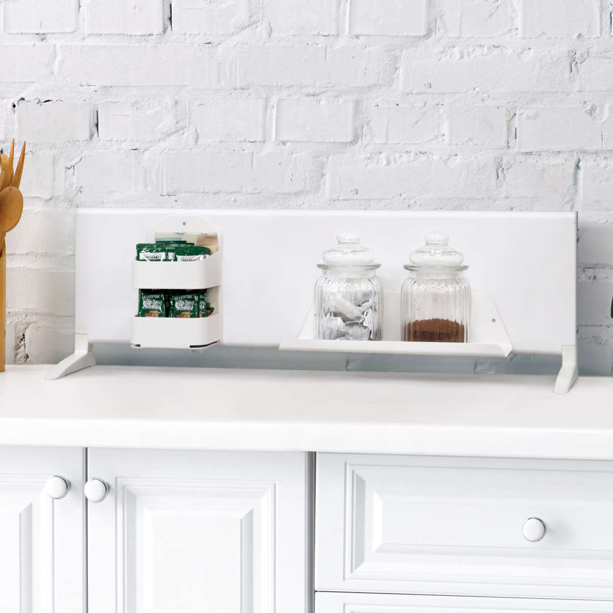 フラットで置きやすく収納物が落ちにくいショートタイプの小物置きです。耐荷重は1kgあるので、香辛料などの細かい物はもちろん、メガネやハンドクリームなどよく使う物をまとめるのにも便利です。