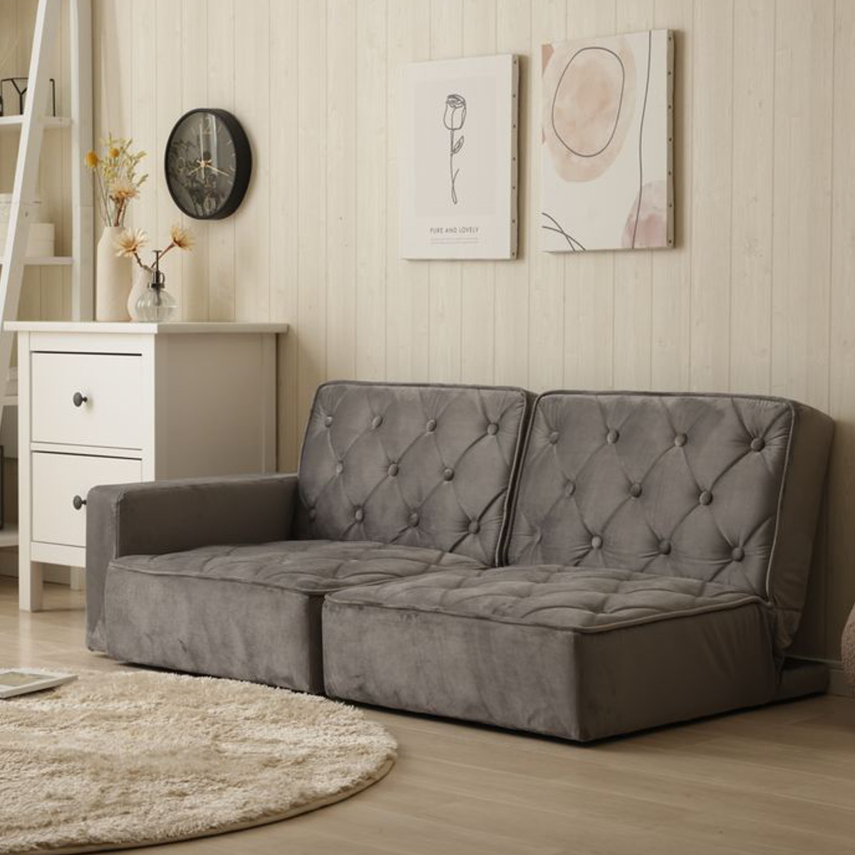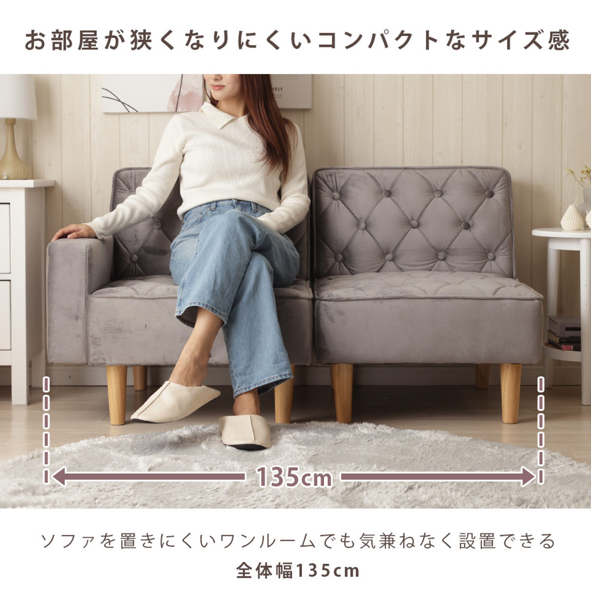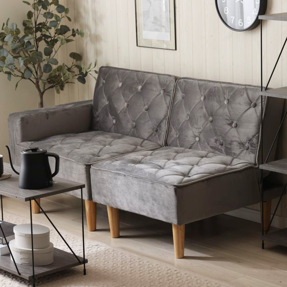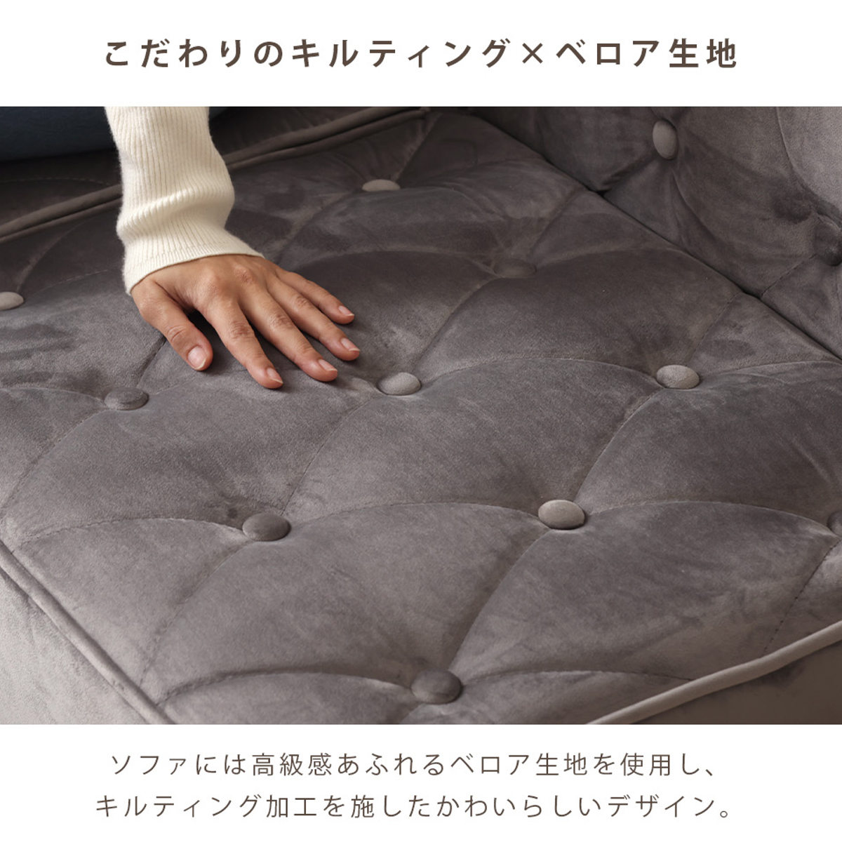 ソファには高級感あふれるベロア生地を使用しています。キルティング加工を施したデザインです。