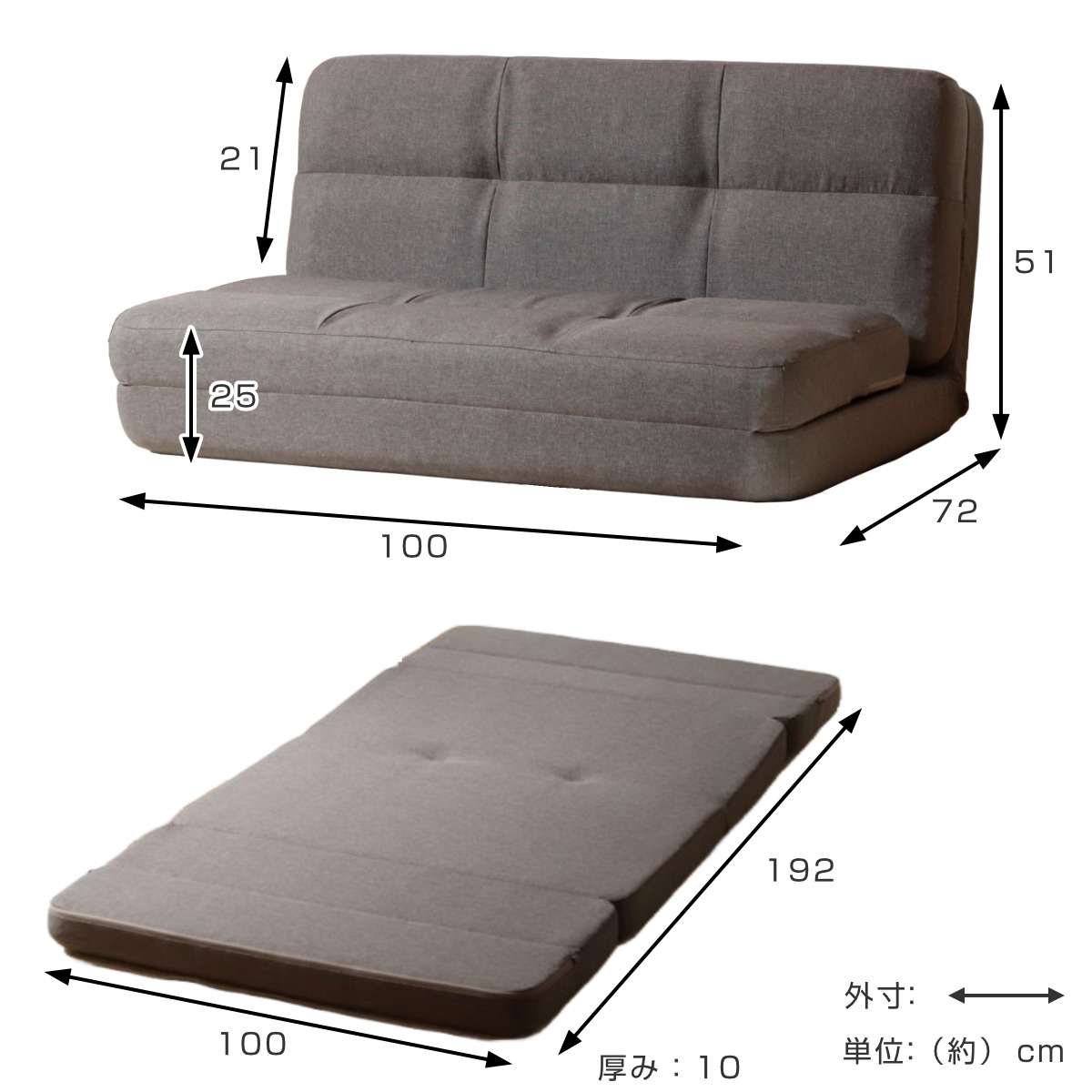 | サイズ | ソファスタイル:幅100×奥行72×高さ51(cm) ベッドスタイル:幅100×奥行192×高さ10(cm) |