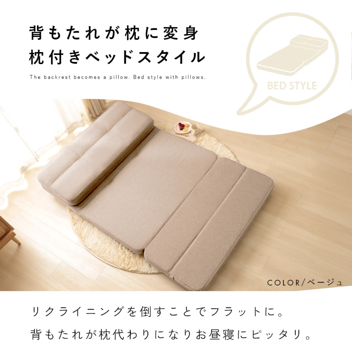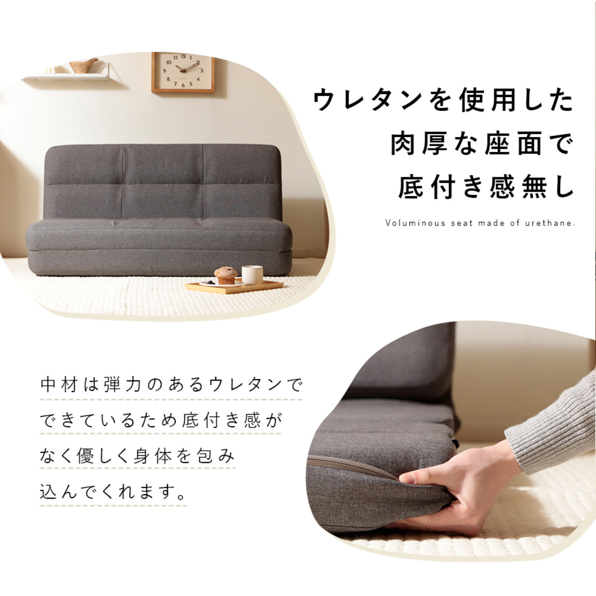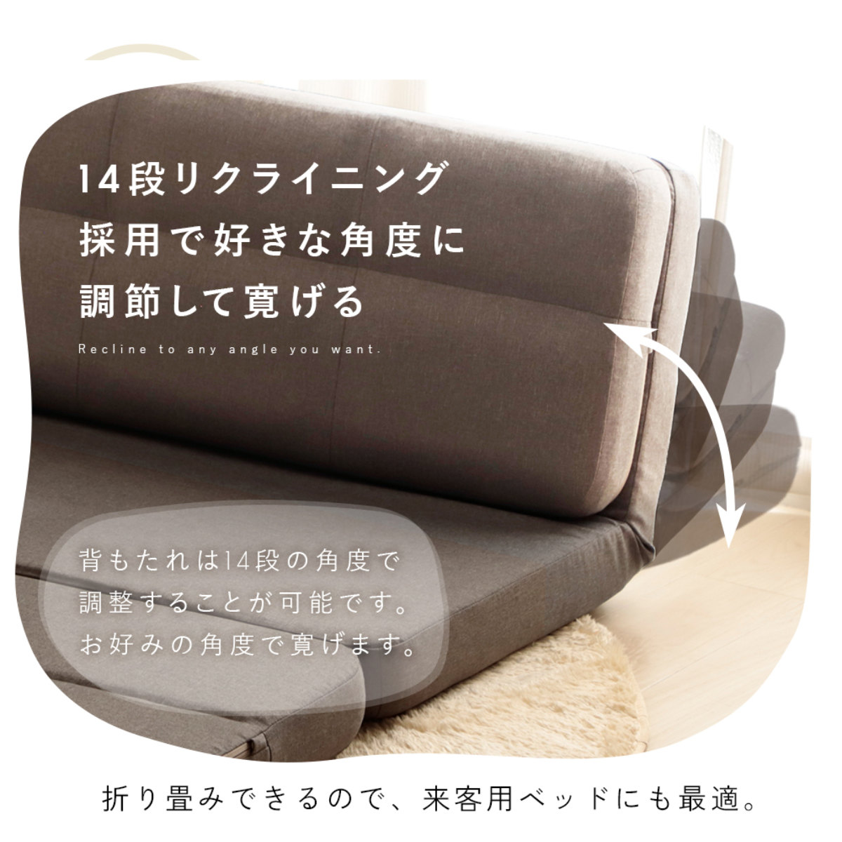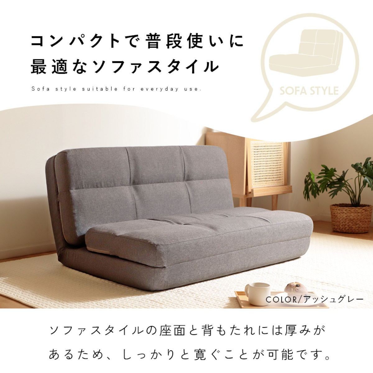 スタンダードなソファスタイルにベッドスタイルまで4パターンでお使いいただけるソファベッドです。簡単にスタイルチェンジできるので様々なシーンで活躍します。