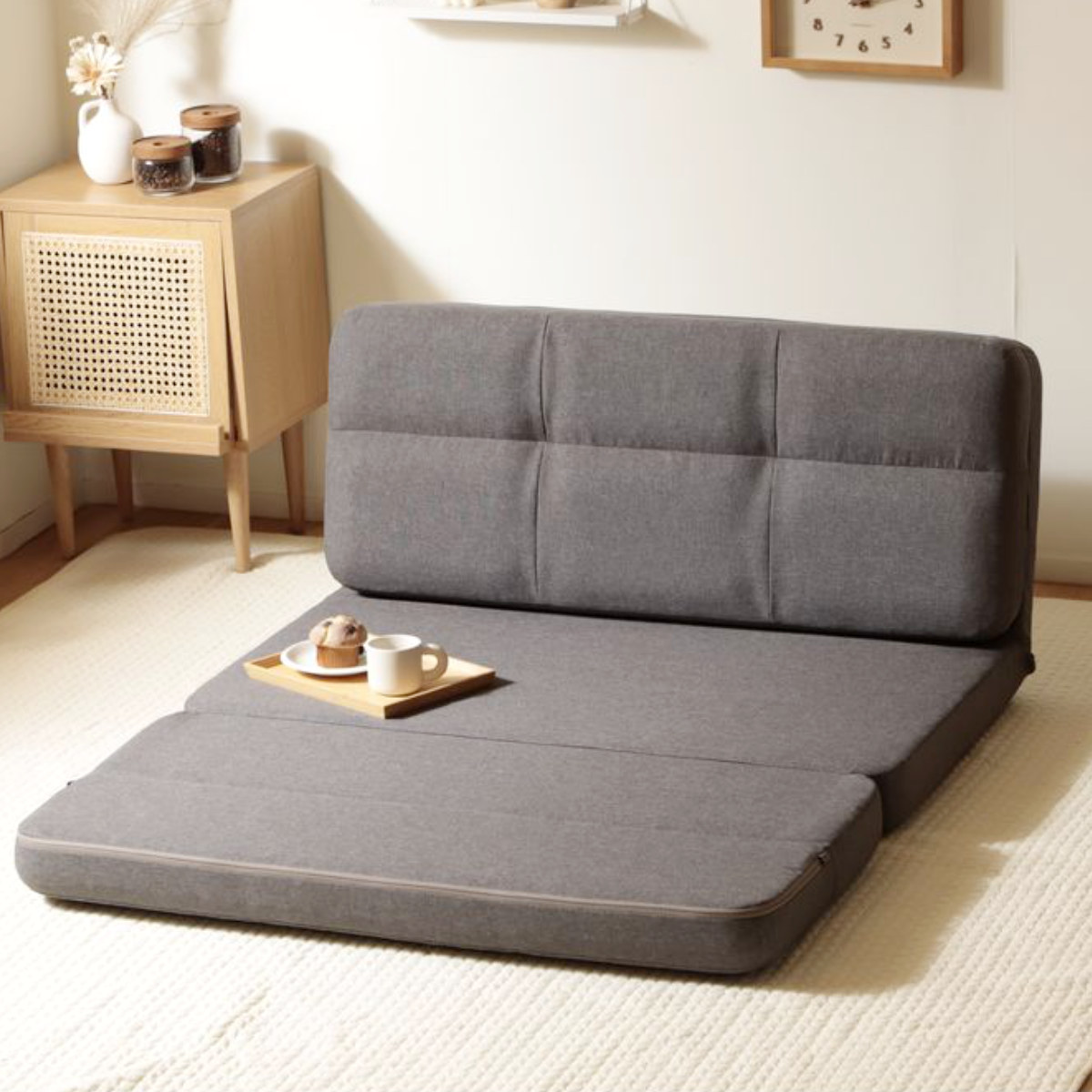 背もたれと座面を折りたたむと、コンパクトで普段使いに最適なソファスタイルに。厚みのある背もたれと座面でしっかりとくつろぐことができます。
