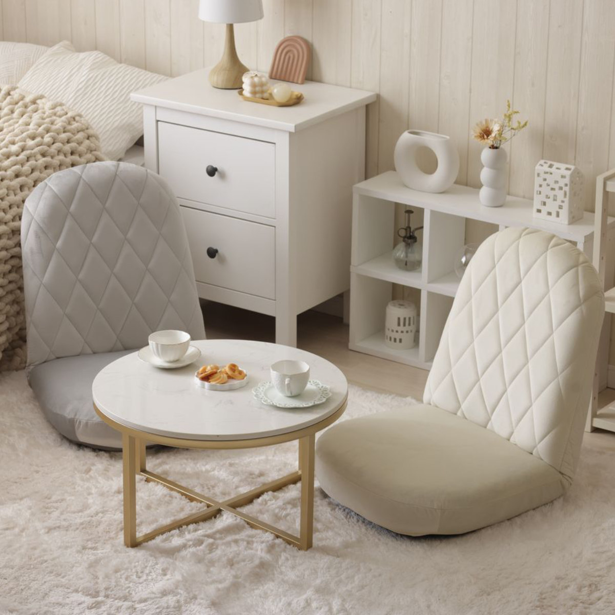 ダイヤステッチが可愛さを引き立てる座り心地の良い座椅子