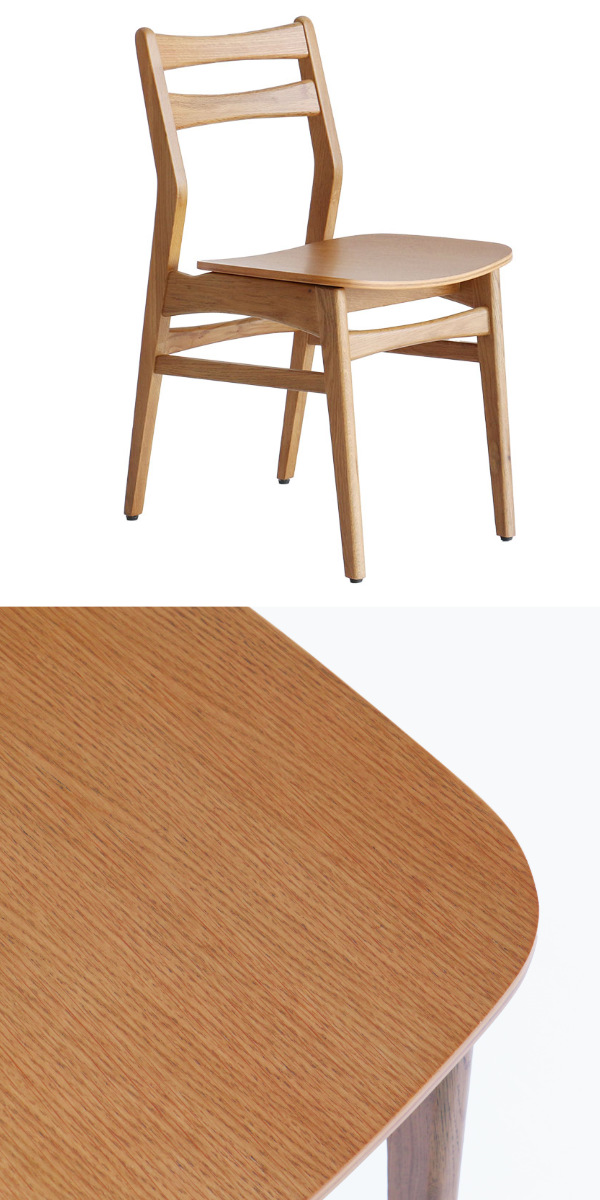 | 材質 | 背もたれ・座面:天然木化粧合板(オーク材) その他:天然木(オーク材) ラッカー塗装 |