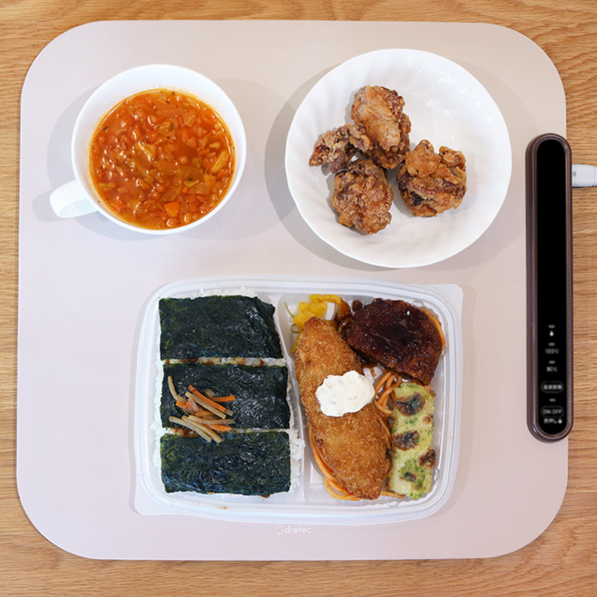 お弁当やお惣菜、ピザなども、プラスチック容器や紙箱のまま使用できます。容器ごと載せられるので、IHヒーターや電子レンジのように容器の材質を気にせず保温できます。