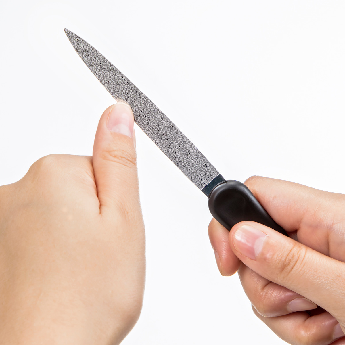 | 材質 | 本体:ステンレス鋼 ヤスリ:クロスカット(三段目立て) ステンレス特殊加工(エッチング) グリップ:エラストマー |
