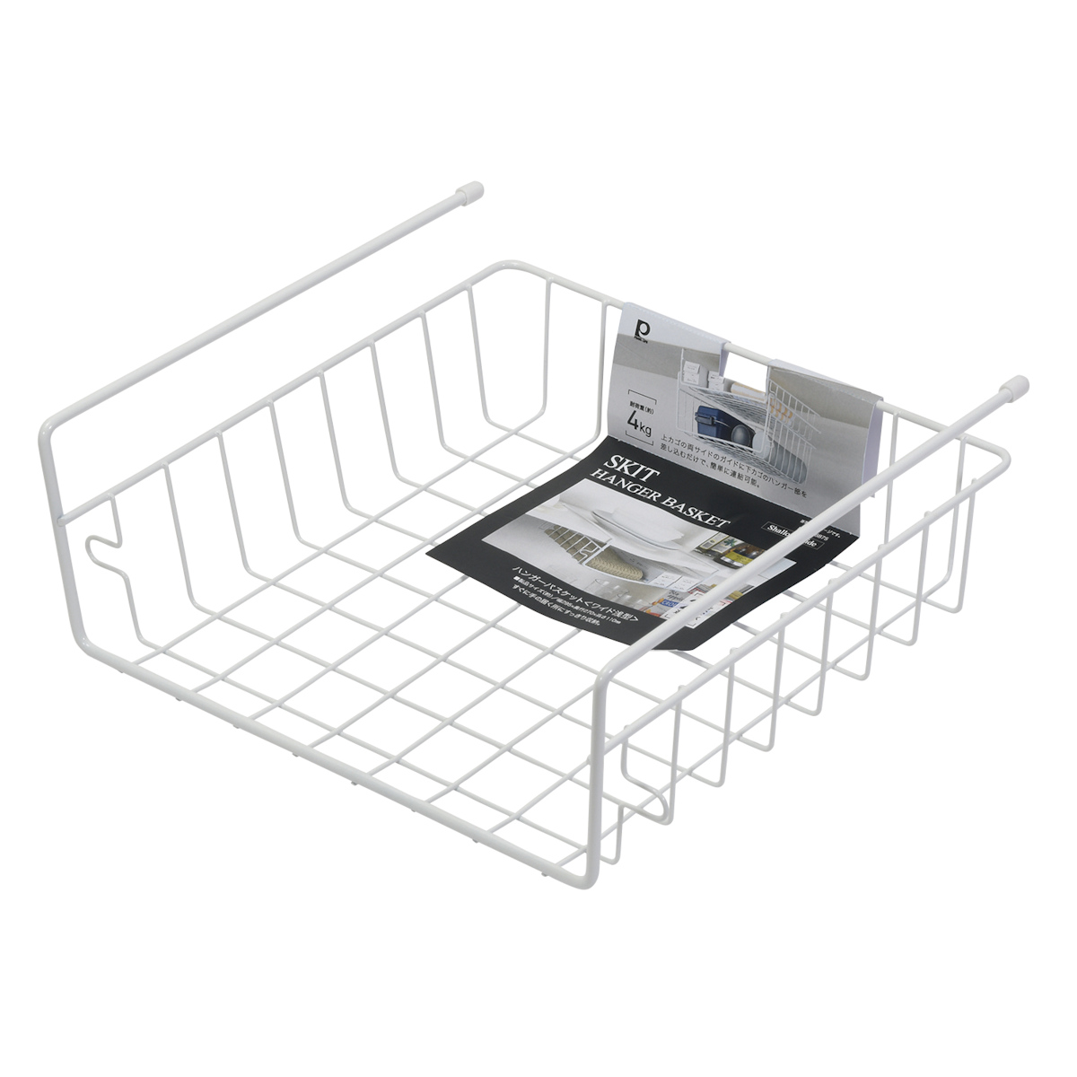 吊り戸棚の棚板に差し込むだけで、簡単に取り付けられるハンガーバスケットです。よく使うキッチンペーパー・ラップ・布巾・調理道具・水筒など、すぐに手の届くところにすっきり収納できます。