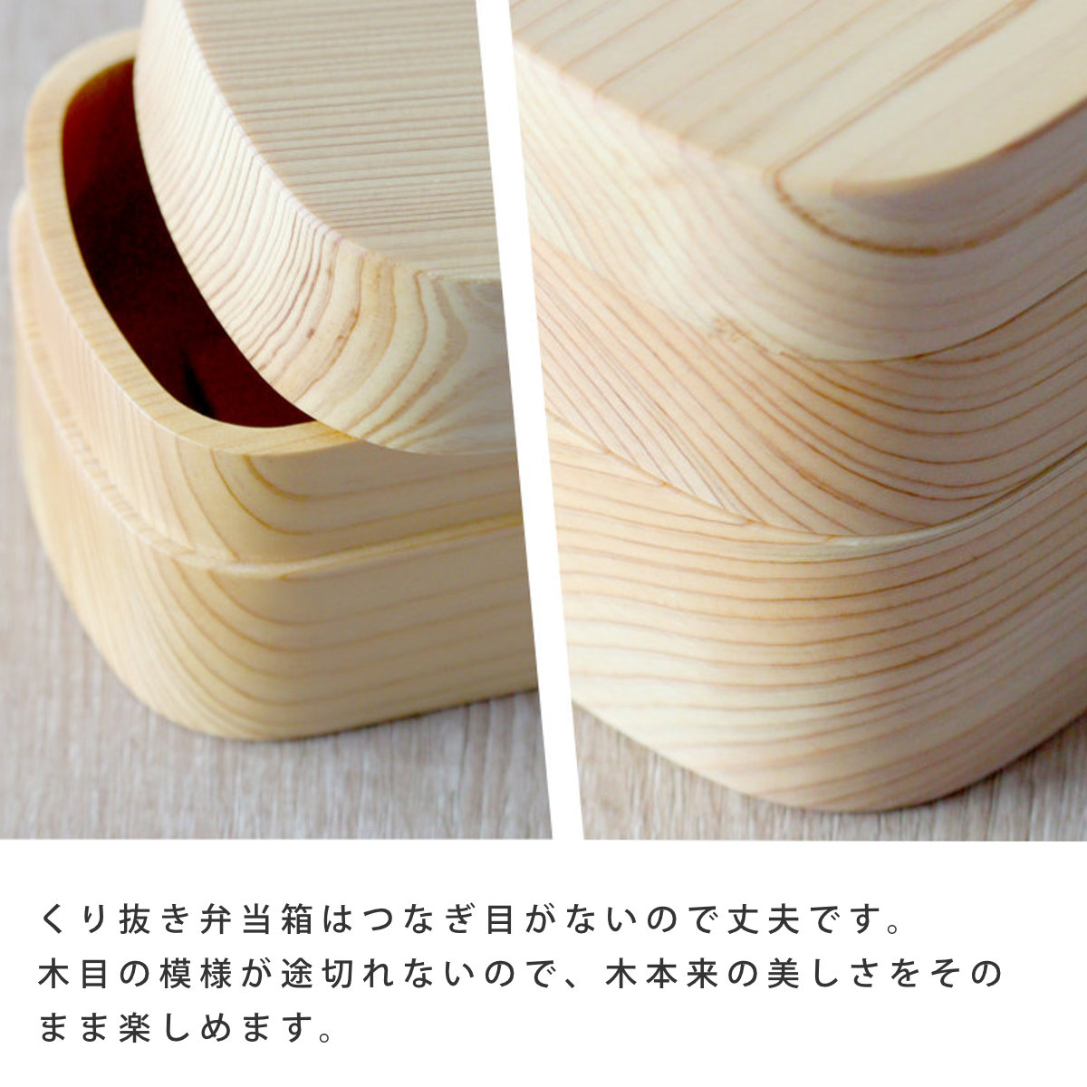 ●紀州産桧を贅沢にくりぬいた、和風モダンなくりぬき弁当箱です。