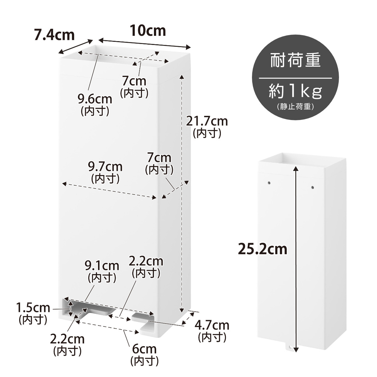 | サイズ | 約 幅10×奥行7.4×高さ25.2(cm) ケース:約 幅9.7×奥行7×高さ21.7(cm) 蓋トレー部:約 幅9.6×奥行7(cm) 取り出し口:約 幅9.1×高さ1.5(cm) |
