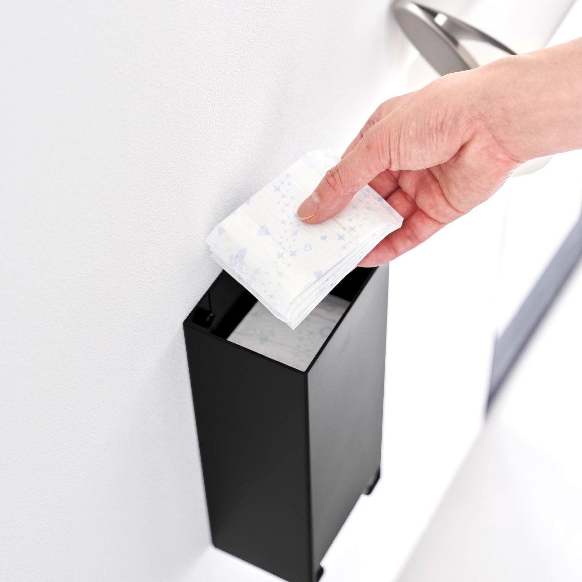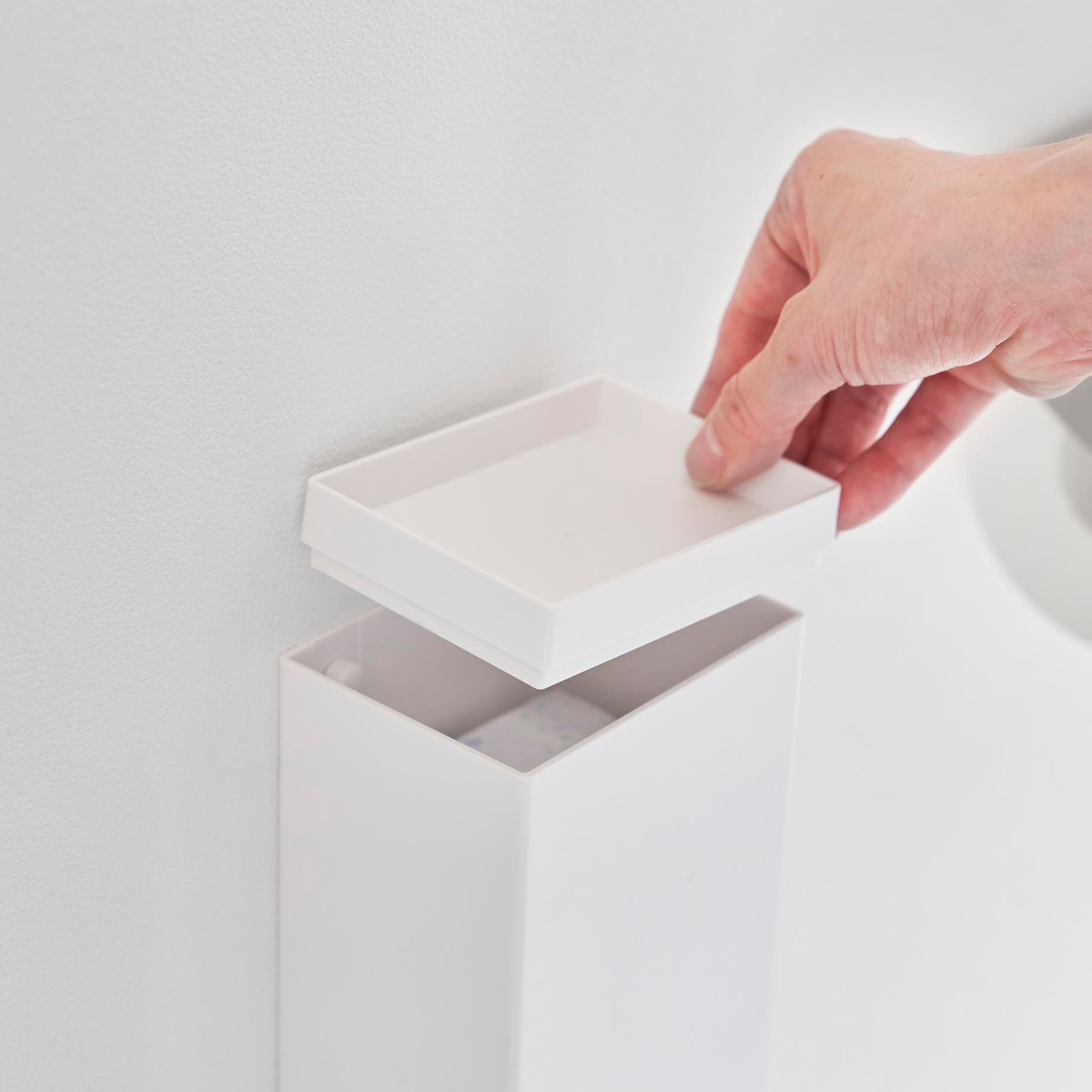 置き場所に困るパンティライナーを壁面に浮かせて収納できるケースです。使いやすい場所に置きながら、見た目もスッキリしてスマートに収納できます。