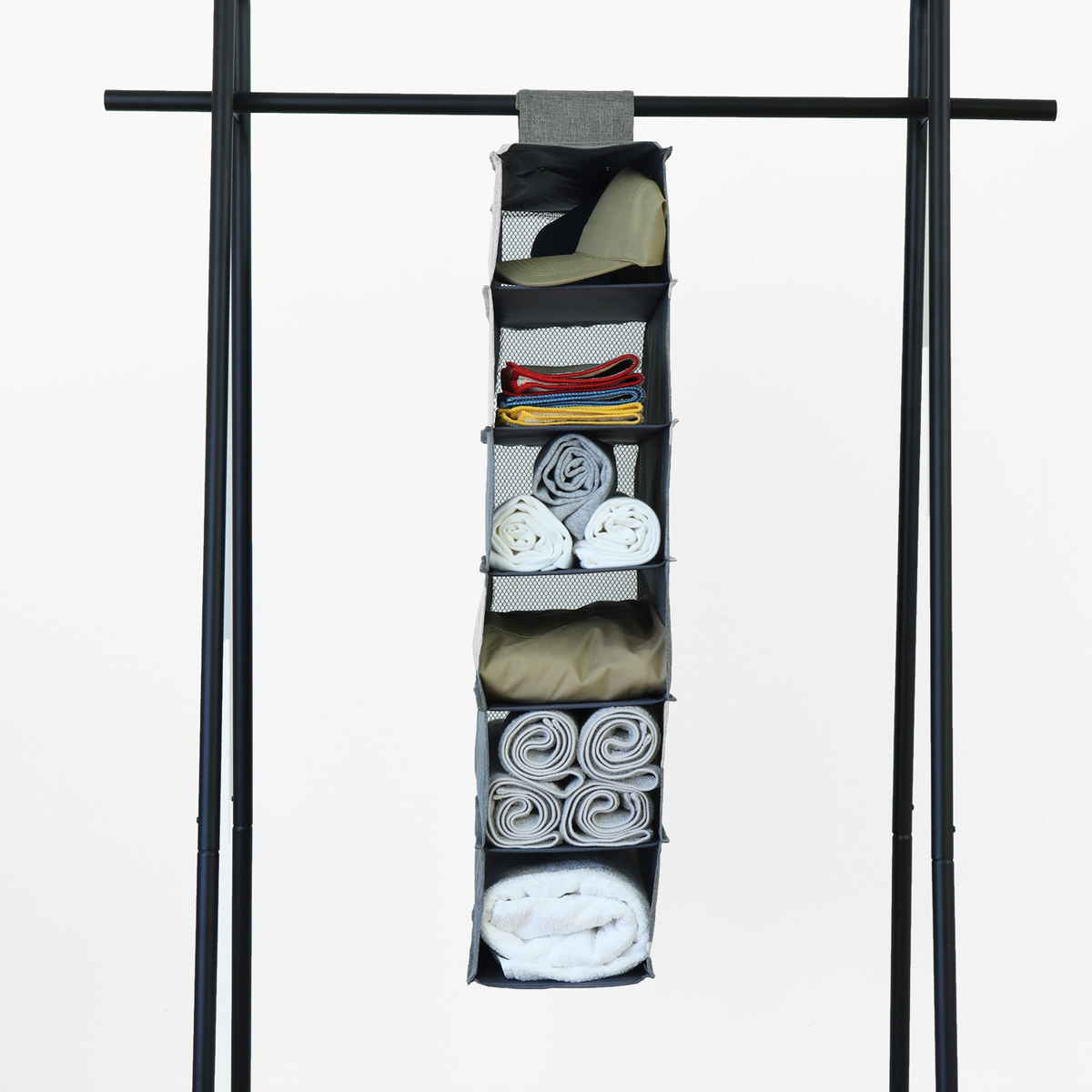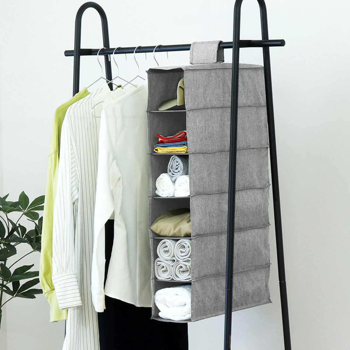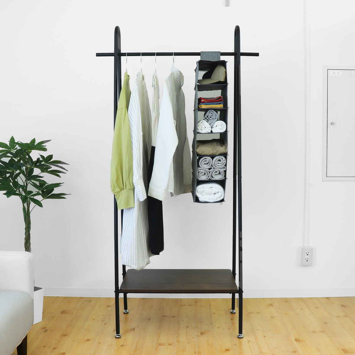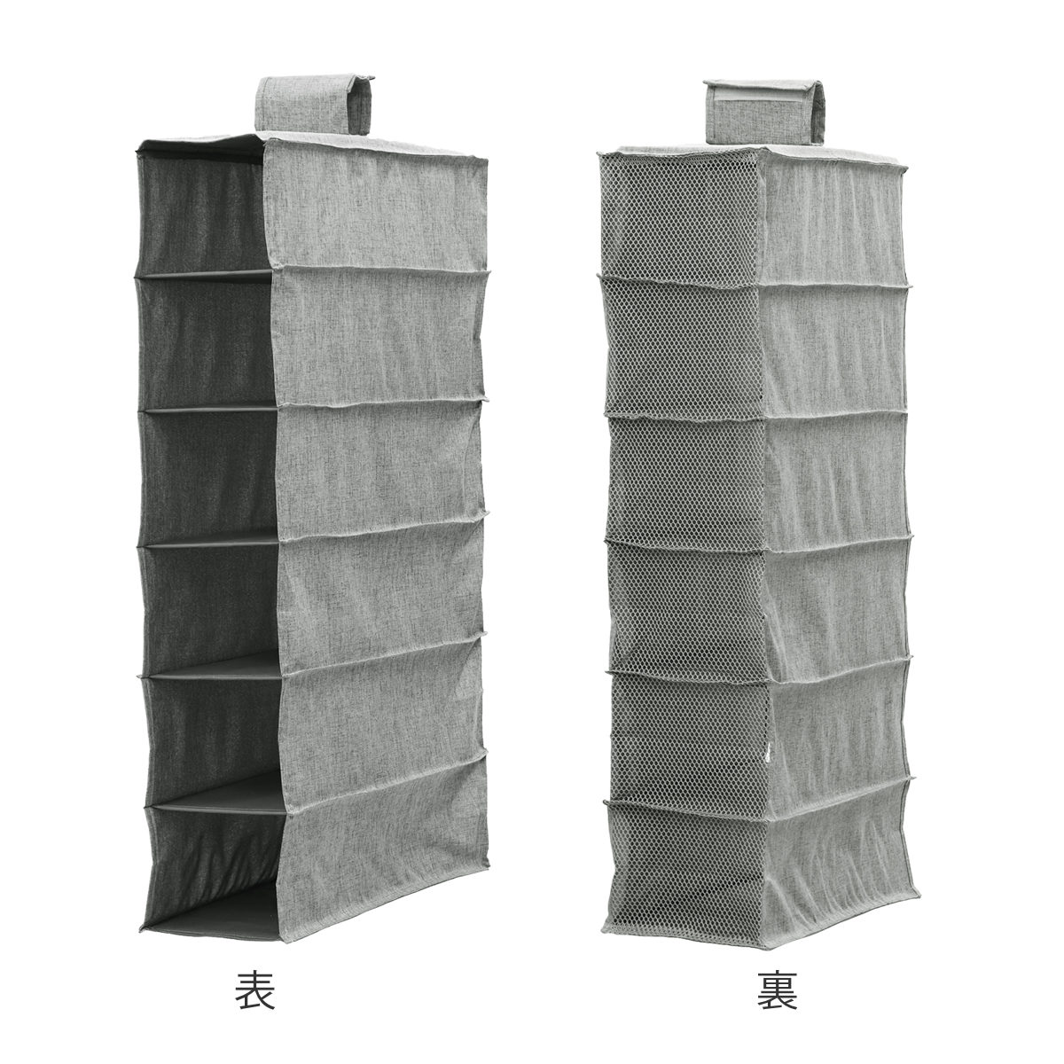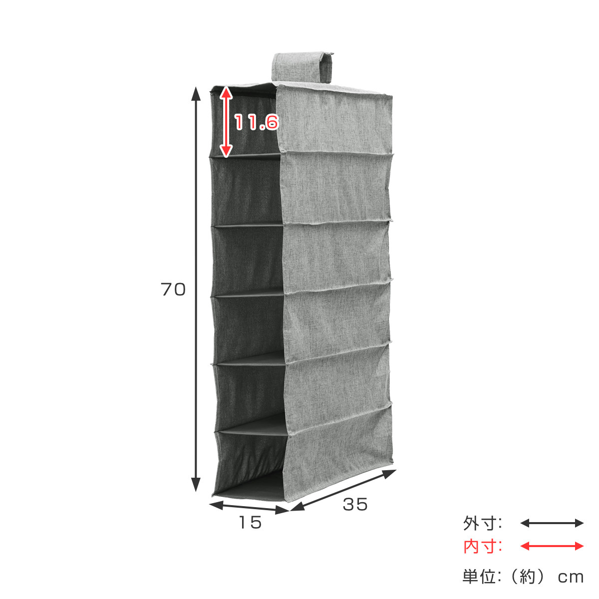 ハンガーラックやクローゼットの空きスペースを有効活用できるハンギングラックです。横幅15cmのスリムタイプなので、狭い空間にも設置できます。種類や家族ごとに仕分けて収納しやすい6段タイプです。