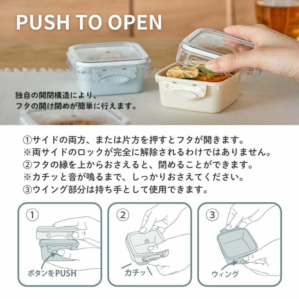 シンプルでスマートなデザインのお弁当箱です。「ワンプッシュ」で簡単に開閉できる蓋設計は、使いやすさ抜群。蓋がしっかり閉まるので、汁漏れがしにくく安心です。お弁当箱としてだけでなく、保存容器としてもお使いいただけます。