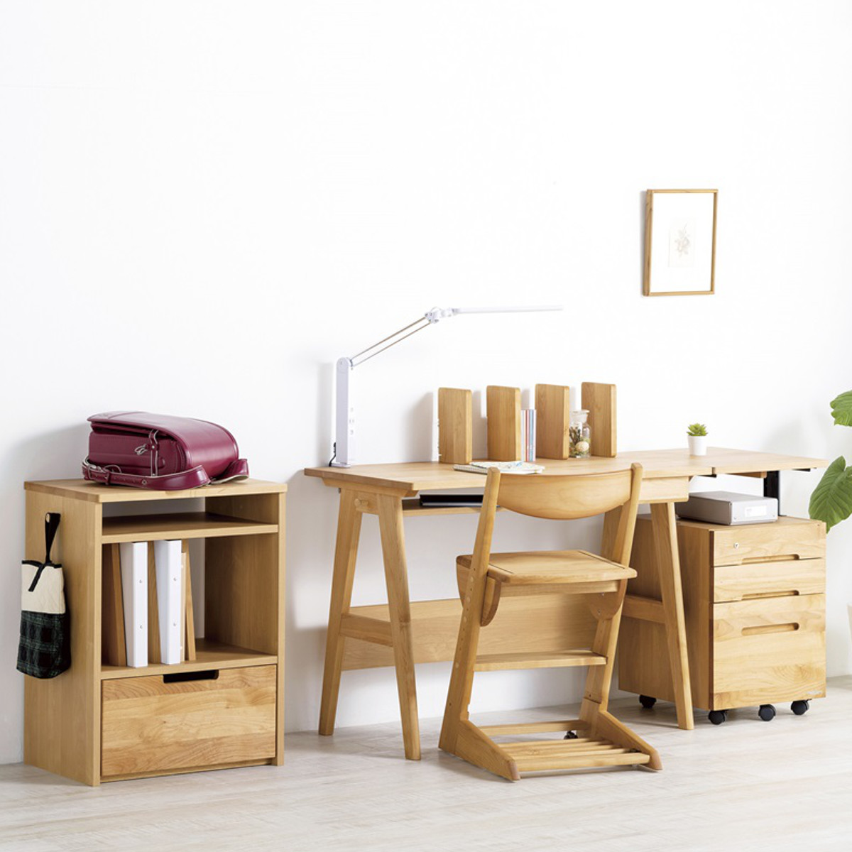 毎日使いたくなる、こだわりの詰まった学習机です。使い込む程に味が出てくるアルダー無垢材の質感、飽きのこないシンプルで機能的なデザインに仕上げました。