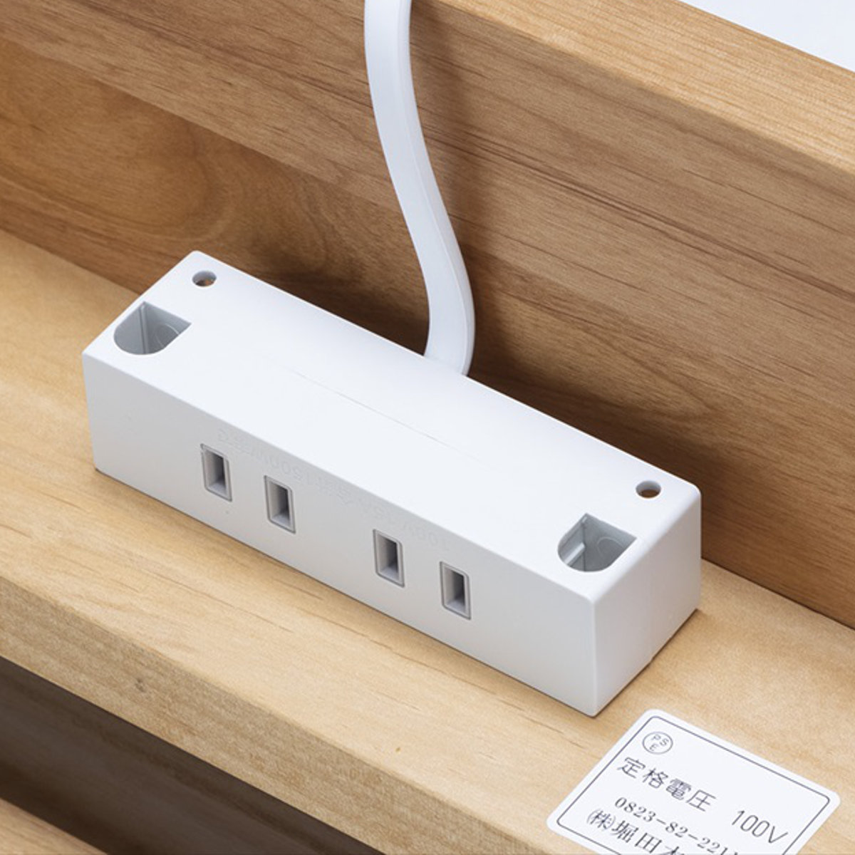 デスクライトや電子機器を使う際に活躍する2口コンセント付きです。引き出し裏面の見えない場所にあるので見た目もすっきりです。