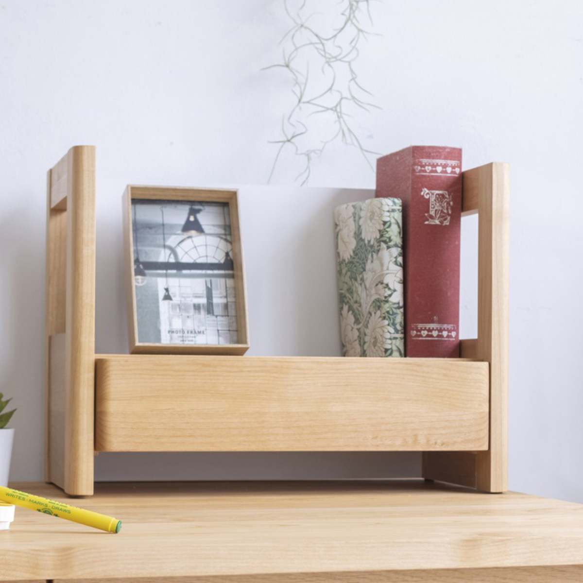 机の上をコンパクトに片づけられる机上棚です。天然木を使用しているため木の風合いや暖かみを感じられます。シンプルなデザインなので、どんなデスクにも合わせやすいです。