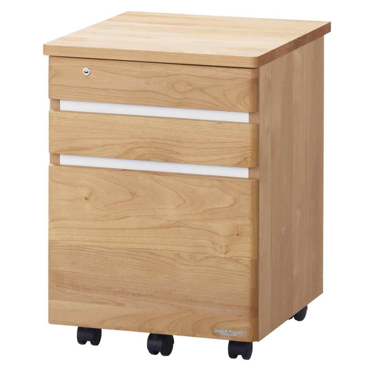 アクセントにホワイトカラーと使用したキャスター付きデスクワゴンです。天然木を使用しているため木の風合いや暖かみを感じられます。シンプルなデザインなので、どんなお部屋にも合わせやすいです。