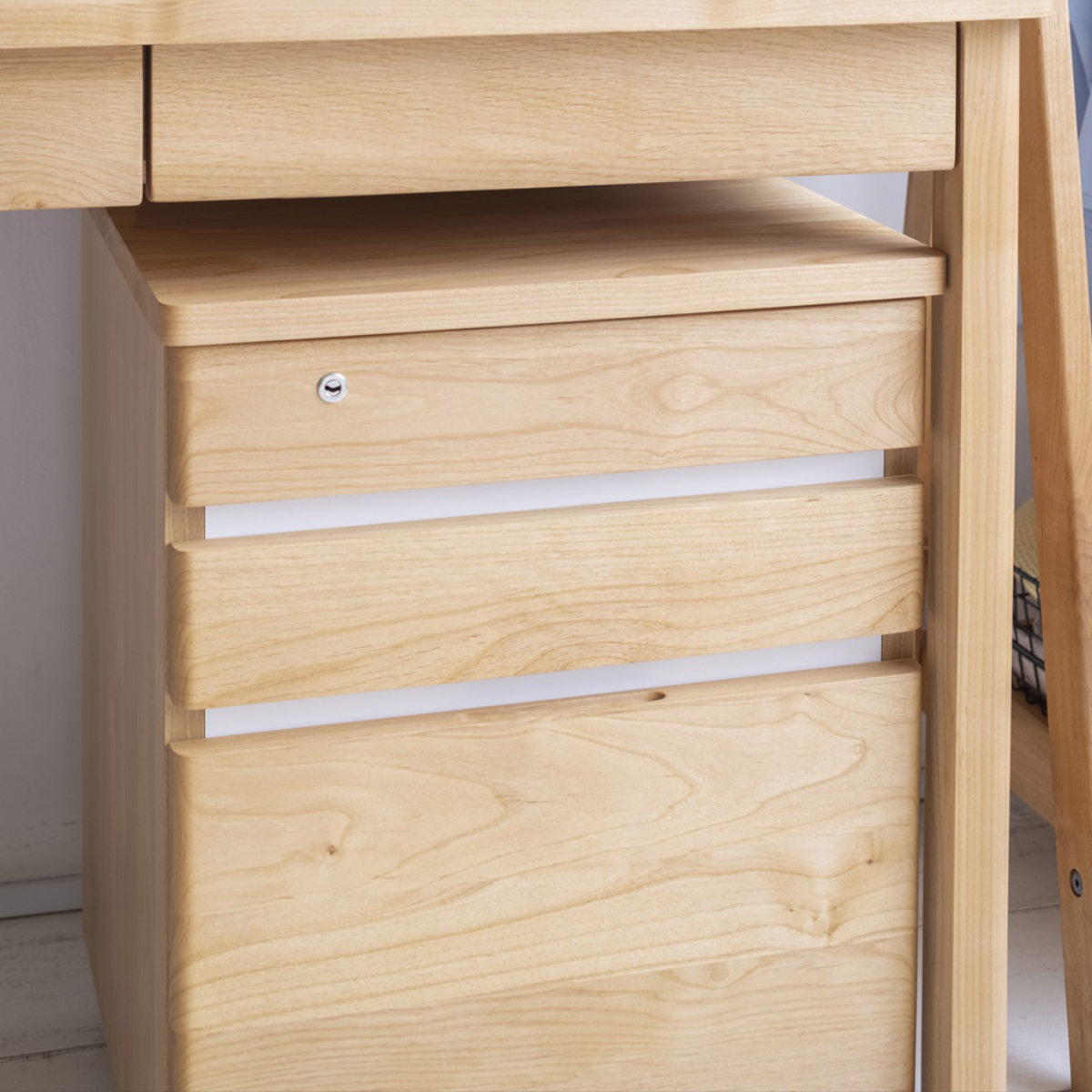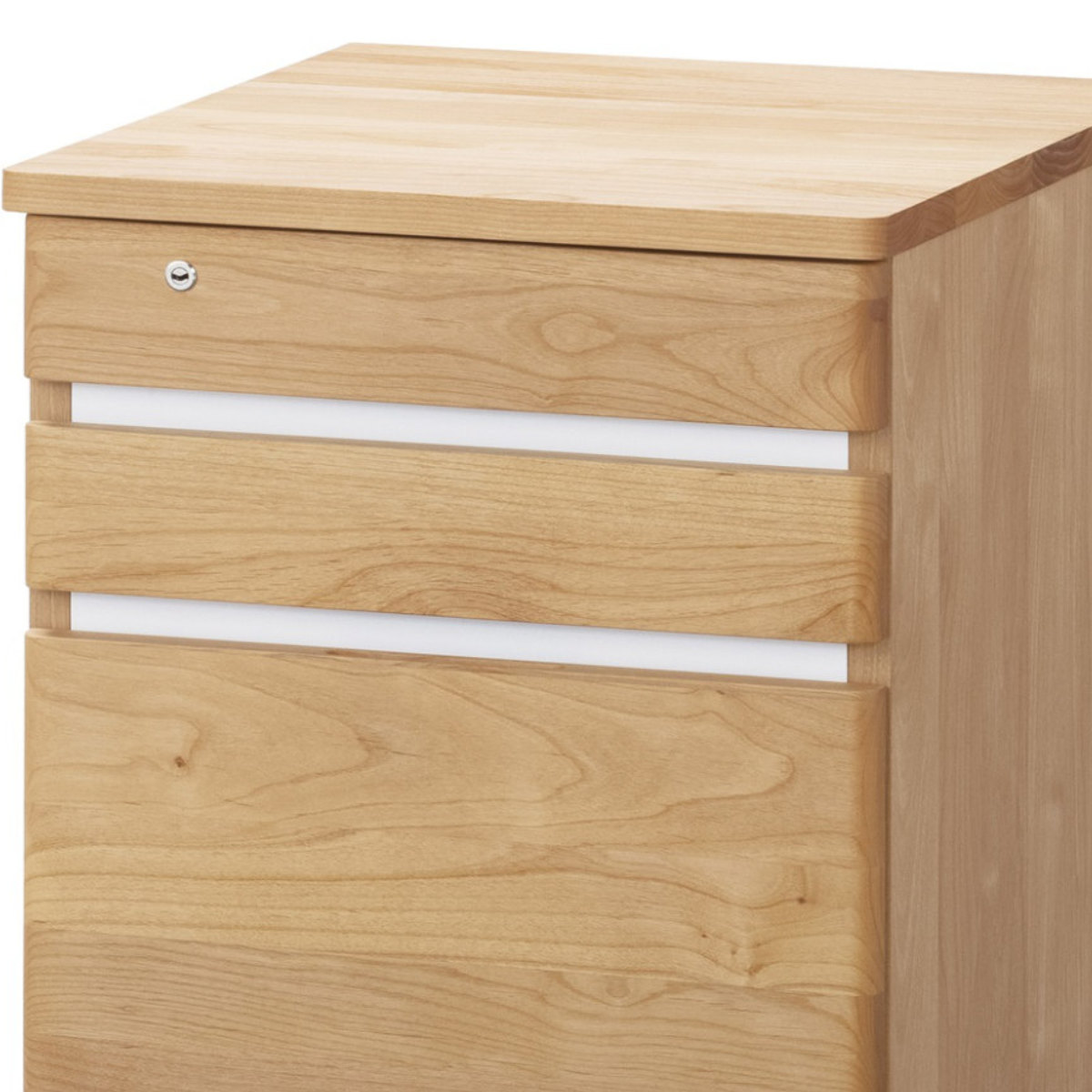 引き出しの前板の間にはアクセントになるホワイトカラーを使用しています。