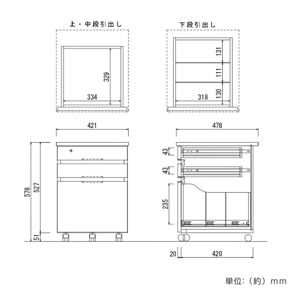 - 約幅42.1×奥行47.8×高さ57.8cm