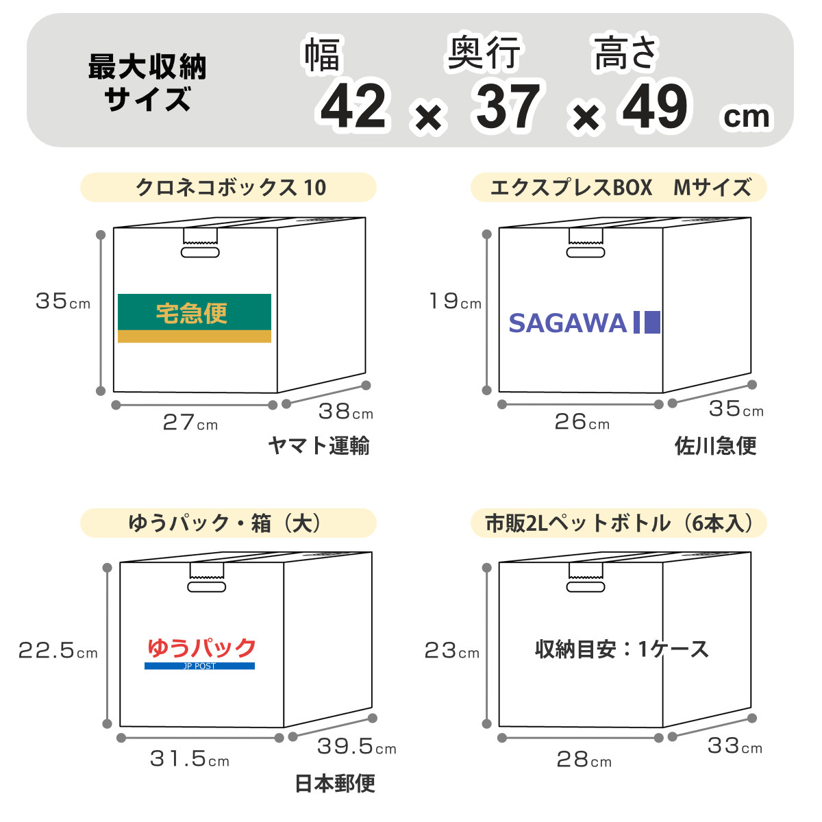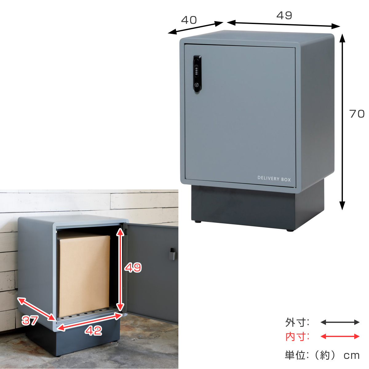 有効内寸約 幅42×奥行37×高さ49(cm)と、大きな収納スペースが魅力です。大きめの荷物も受け取れる大容量です。