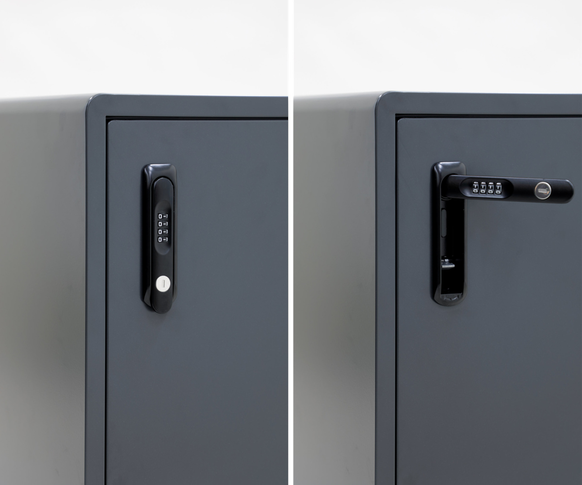 鍵はダイヤル錠を採用しており、セキュリティー面も安心です。ダイヤル錠で解錠後、扉を開ける取っ手にもなります。また、付属の鍵でも開閉可能です。