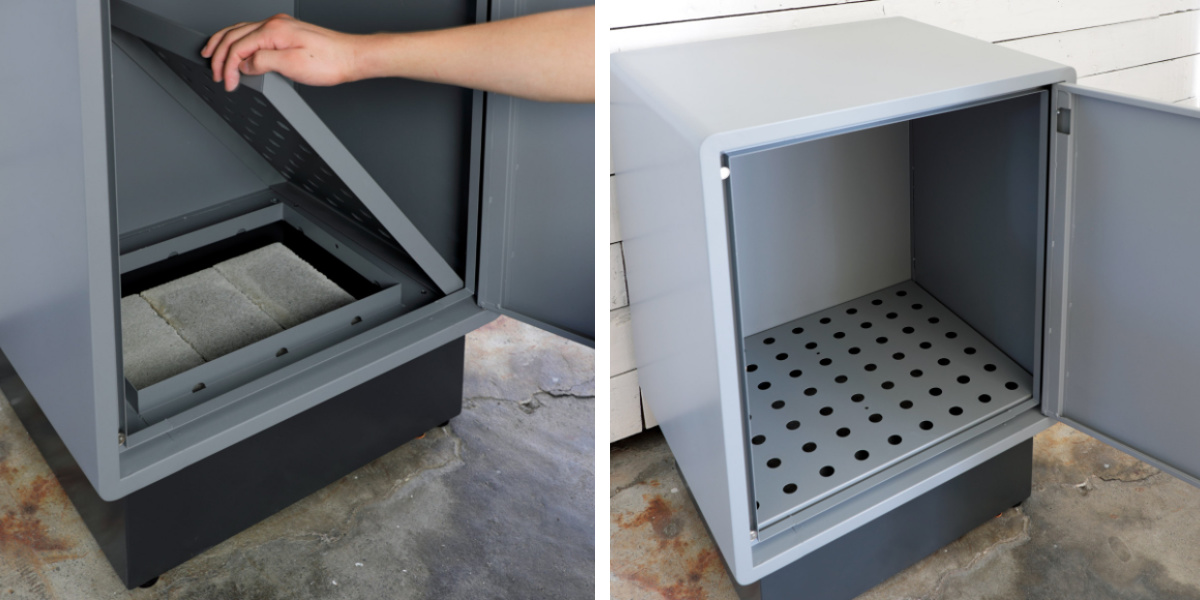 中底の天板を外すとレンガやブロックを入れるスペースがあり、強風などで動いてしまうのを防ぐための重りをスマートに隠せます。
