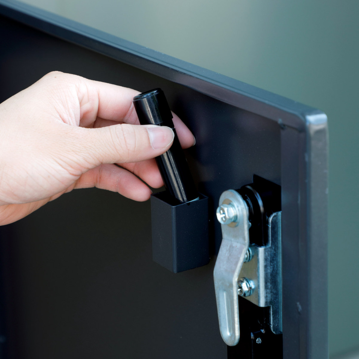 ボックスの内側には、捺印用の印鑑ケース付きです。マグネット式なのでお好きな位置に取り付けが可能です。
