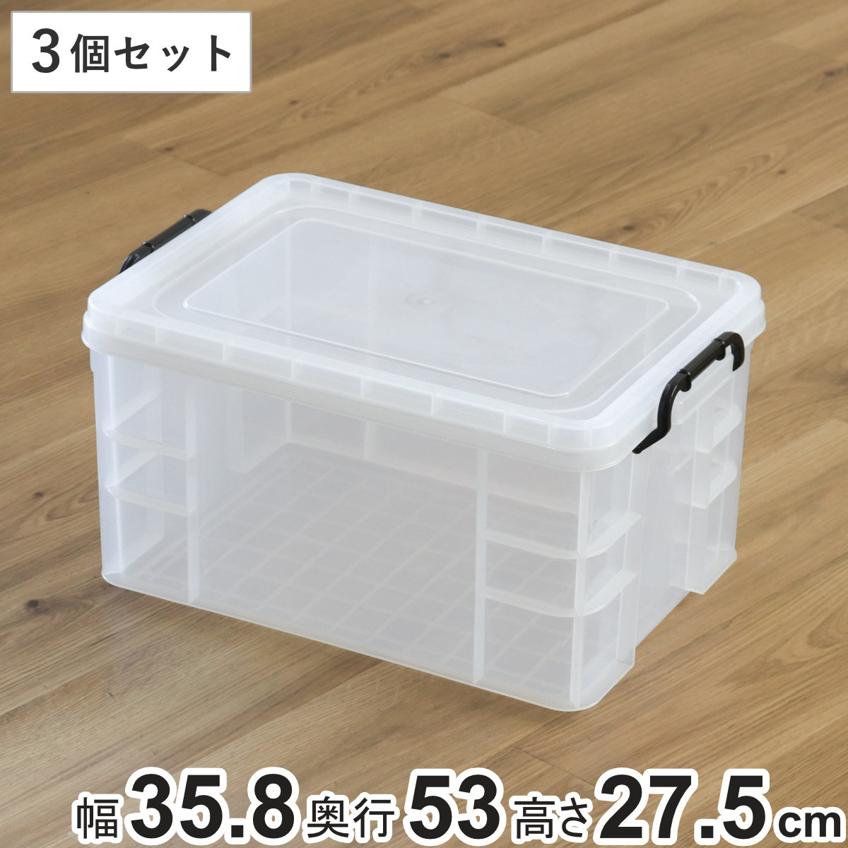 積み重ねできる丈夫なクリアボックス 2型 3個セット
