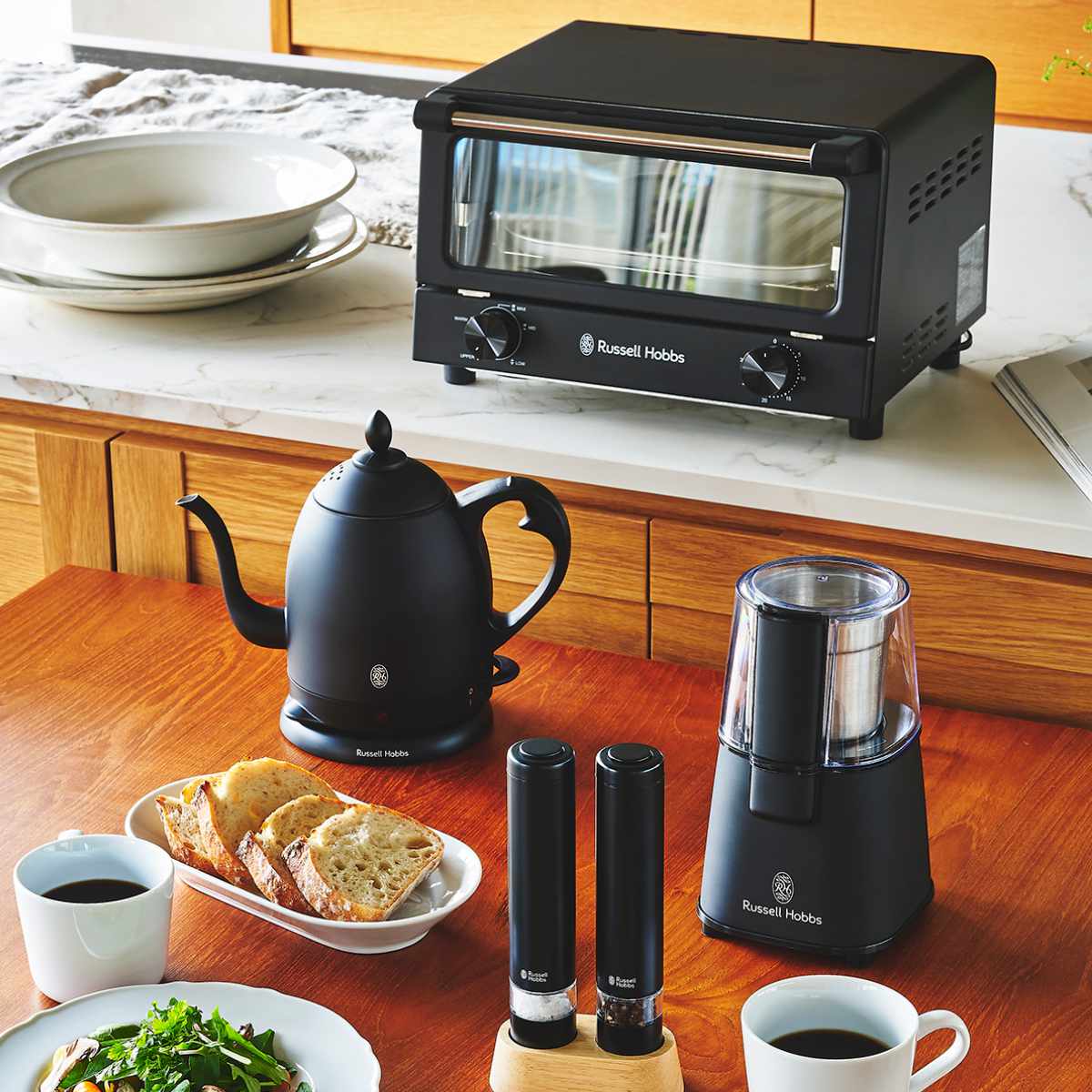 ラッセルホブス(Russell Hobbs)は、1955年にお湯が沸騰すると自動的に電源が切れる「自動電源OFF機能」を搭載した世界初の電気ケトルを生み出しました。 パンを美味しく焼き上げるトースターの新機能など、ケトル以外にも独創的な製品を数多く開発し、日本に上陸後はJAPANオリジナルの「カフェケトル」なども誕生。 シンプルでスタイリッシュなキッチン家電が、あなたの暮らしに豊かさをもたらします。