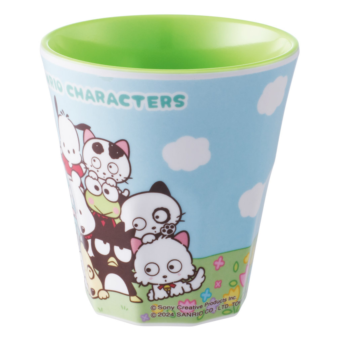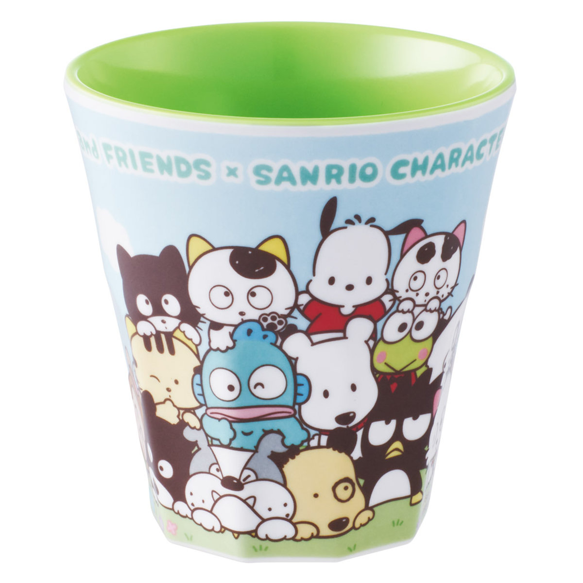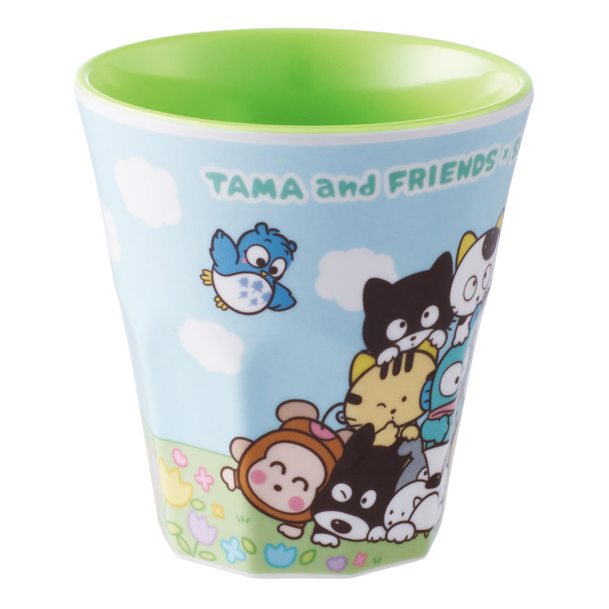 タマ&フレンズとサンリオのキャラクターたちが描かれたタンブラーです。メラミン製なので軽くて衝撃に強く、落としても割れにくいのでお子様にもおすすめです。