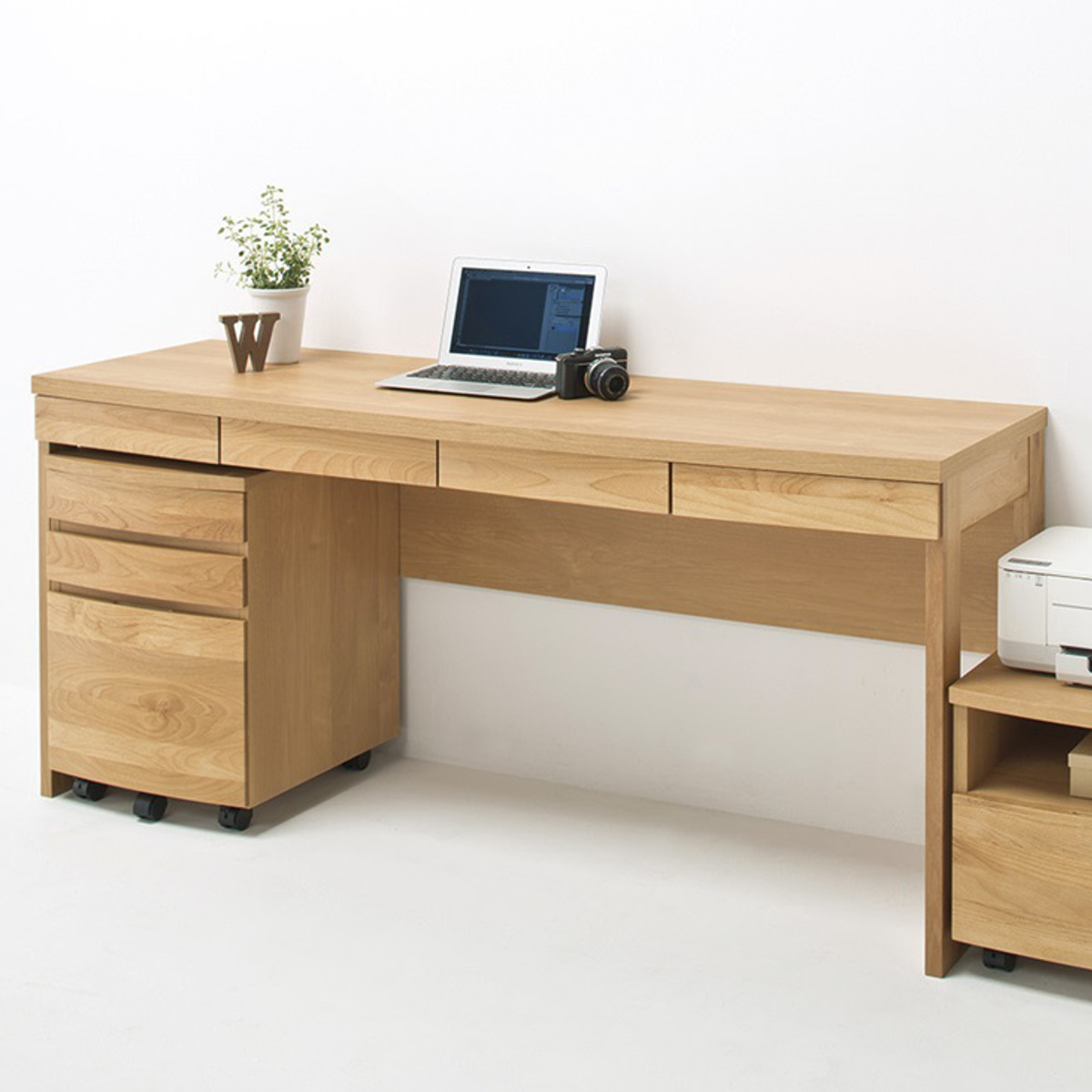 スリムな奥行ながらノートPCを置いても手前に余裕のある、使い勝手のよいサイズ感です。書斎からリビングまで幅広いシーンで活躍します。