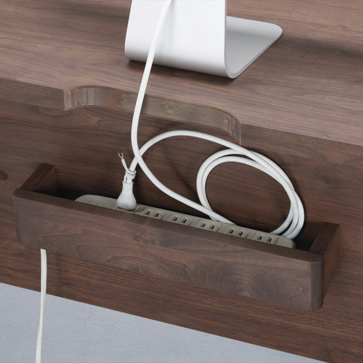 配線を収納できる配線ボックスが1個付いています。左・中央・右に取り付ける事ができ、背面にも取り付け可能です。