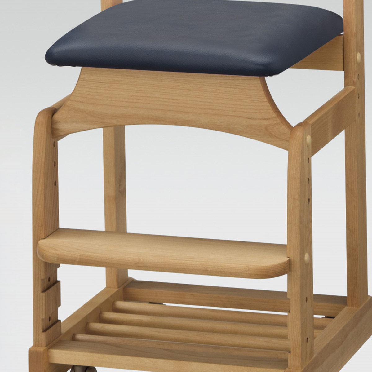 座面は4段階、足置きは3段階に高さ調整ができます。座面は前後にスライドすることもできるので、姿勢が安定し疲れにくく集中力もアップします。