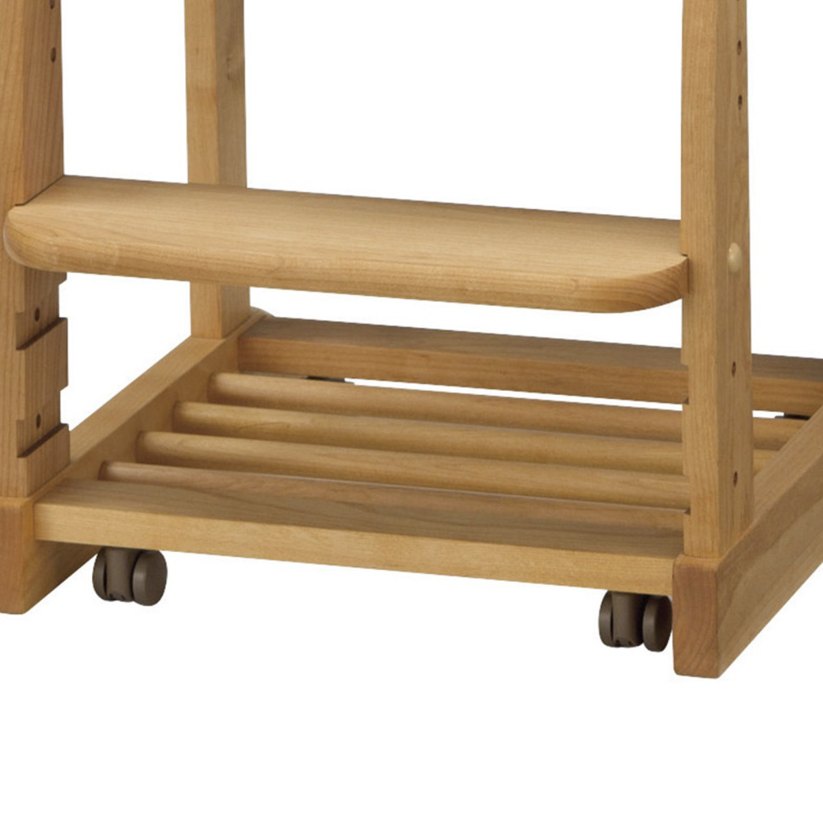 3段階に高さ調節ができ、奥行が広めの足置きが付いています。足裏がしっかり着くので足がぶらつかず安心感が得られます。