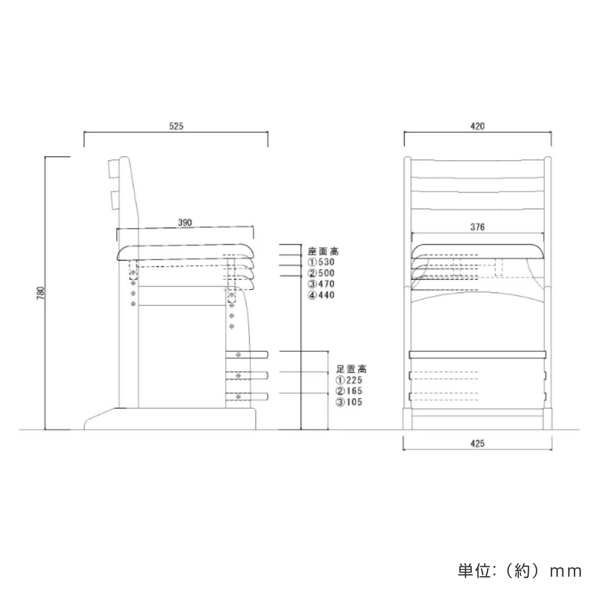 | サイズ | 約 幅42.5×奥行52.5×高さ78(cm) 座面高:約 44・47・50・53(cm) |