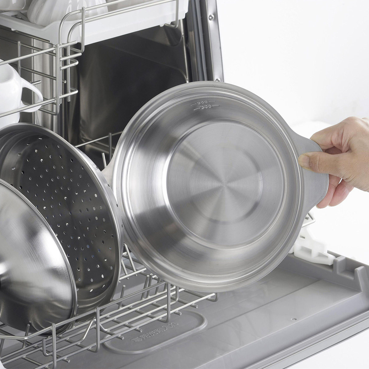 フラットな形状なので、サッと洗えてお手入れらくらくです。食器洗い乾燥機もご使用いただけます。