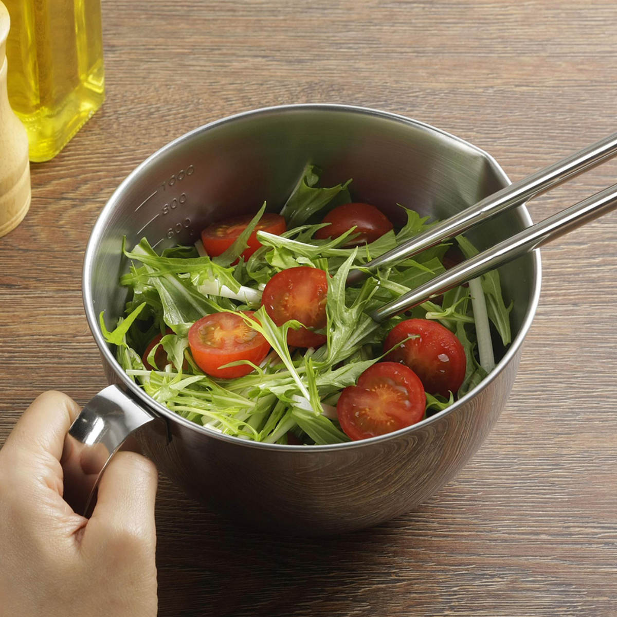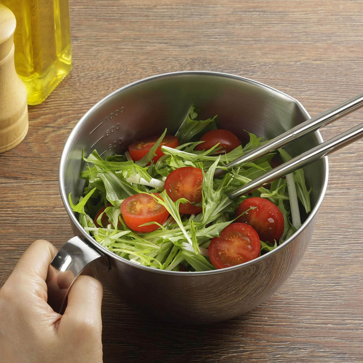 手際よく調理できる持ち手付きボウル