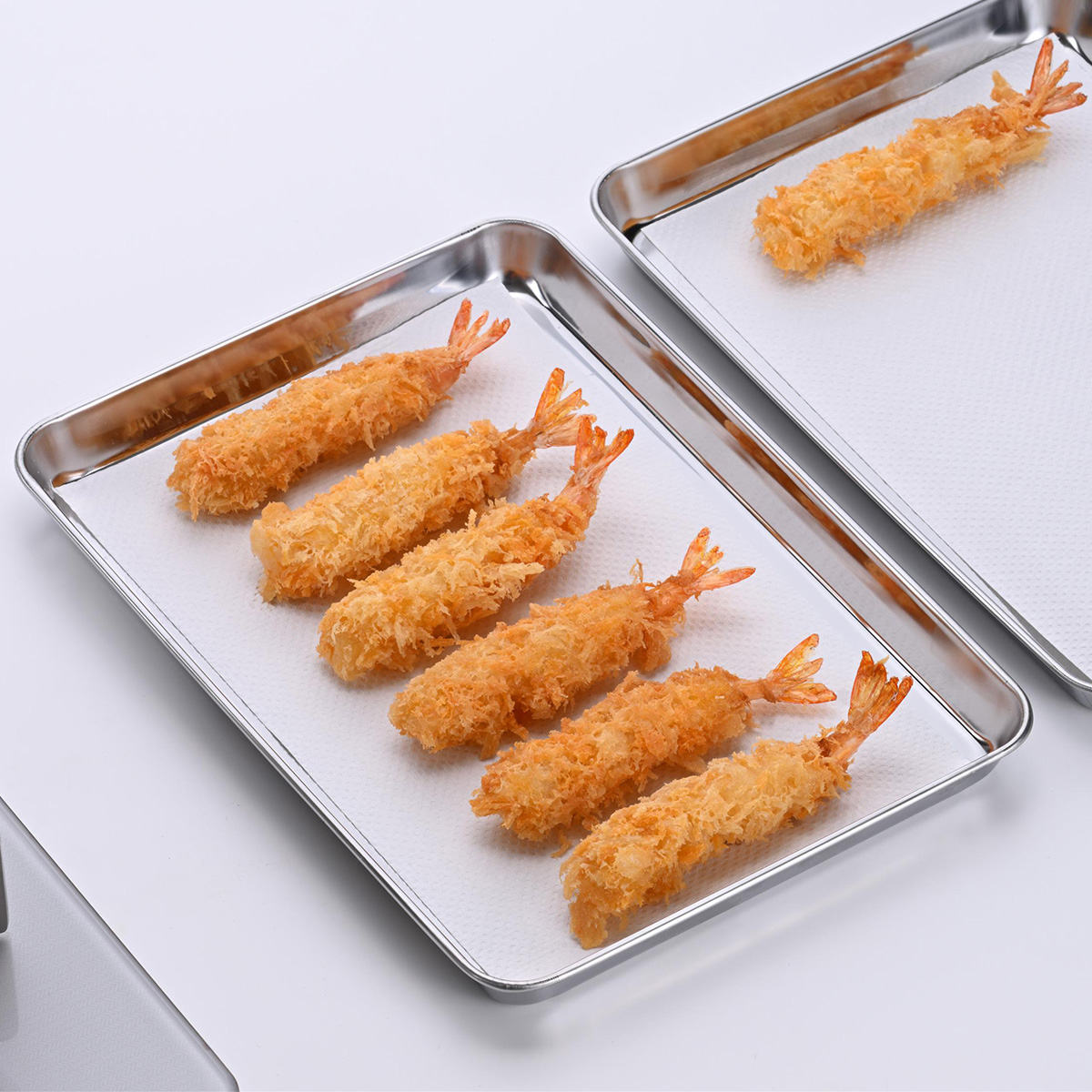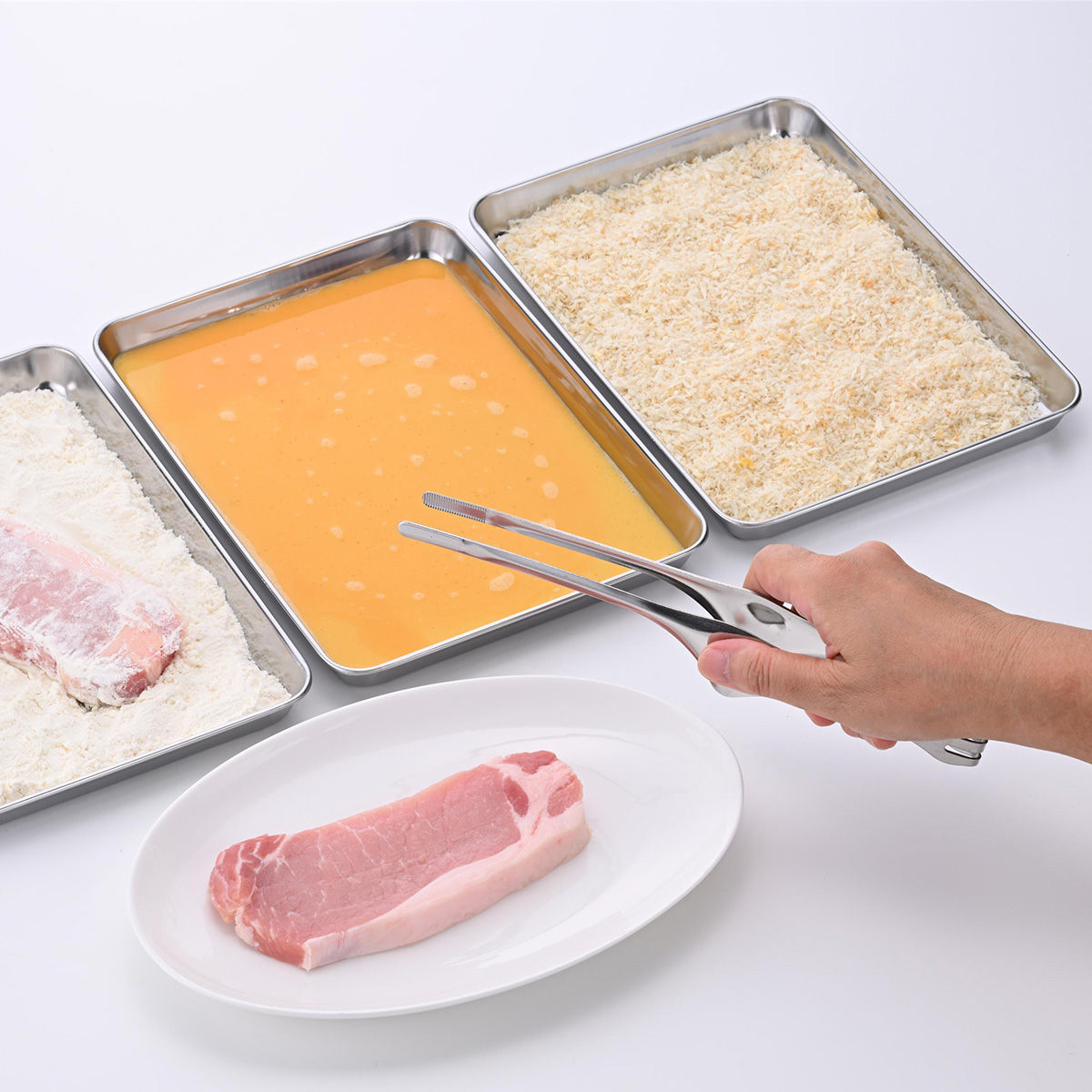 小麦粉、卵、パン粉と3枚使って、とんかつやエビフライなどの衣付けもスムーズに行えます。