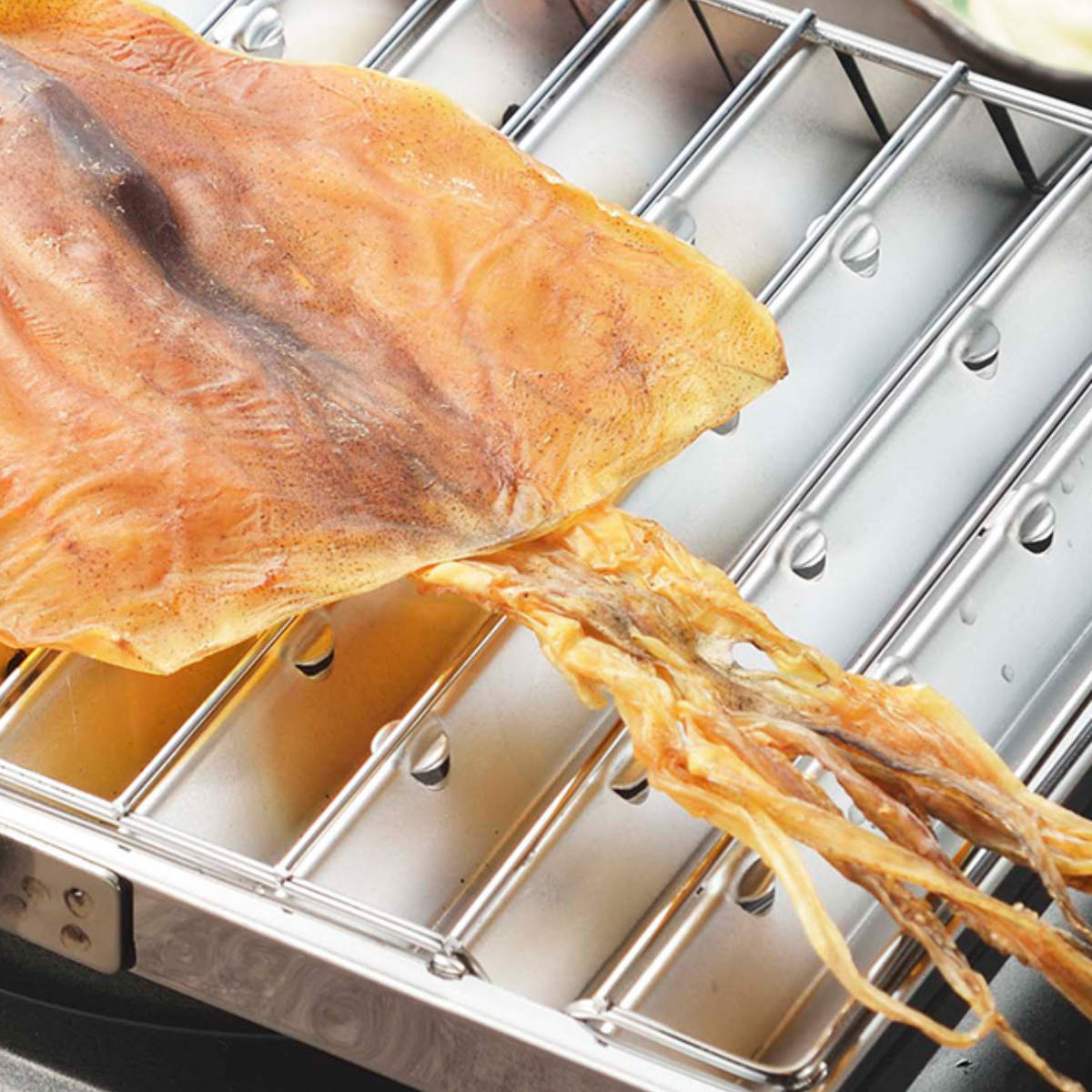 本体には熱伝導の良いアルスター素材を使用し、かつジグザグのアコーディオン形状になっているので、焦がすことなく中までしっかり火を通せます。また、肉や魚から出た脂が穴の下に落ちない構造になっているので、火に脂が触れて悪臭が出るのを防げます。