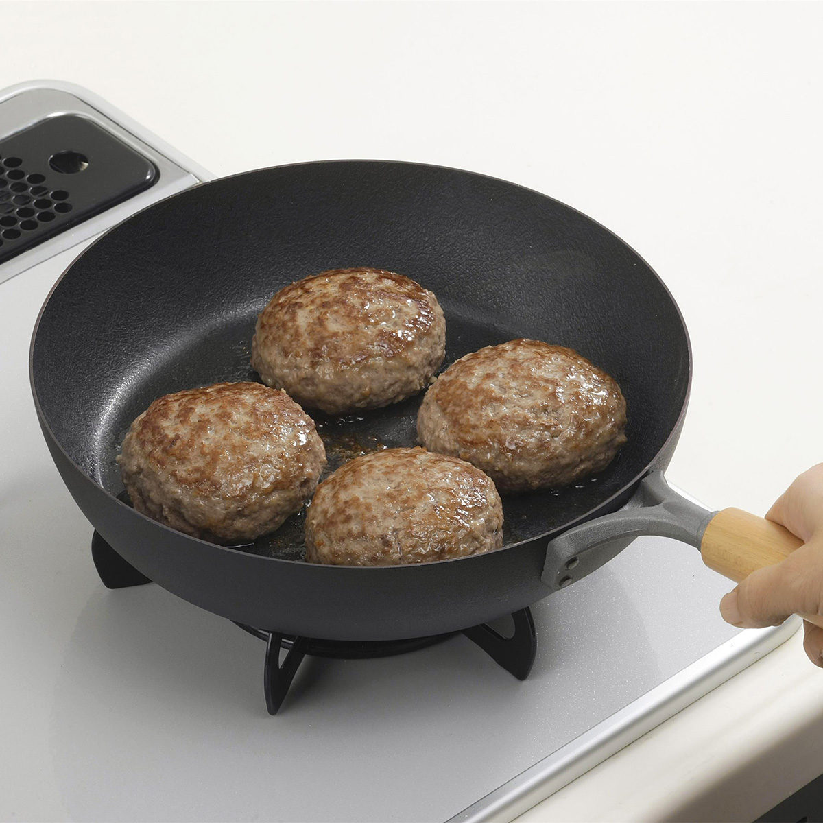 鉄フライパンは熱伝導と蓄熱性に優れているので、食材をムラなく均一に加熱できます。使えば使うほど油がなじみ、日々調理をすることでより良い状態へと育てていけるところも魅力の一つです。